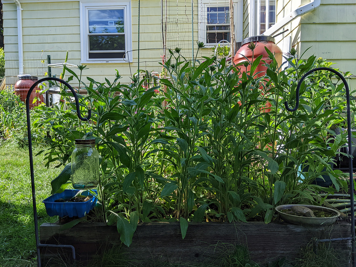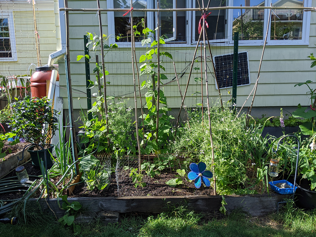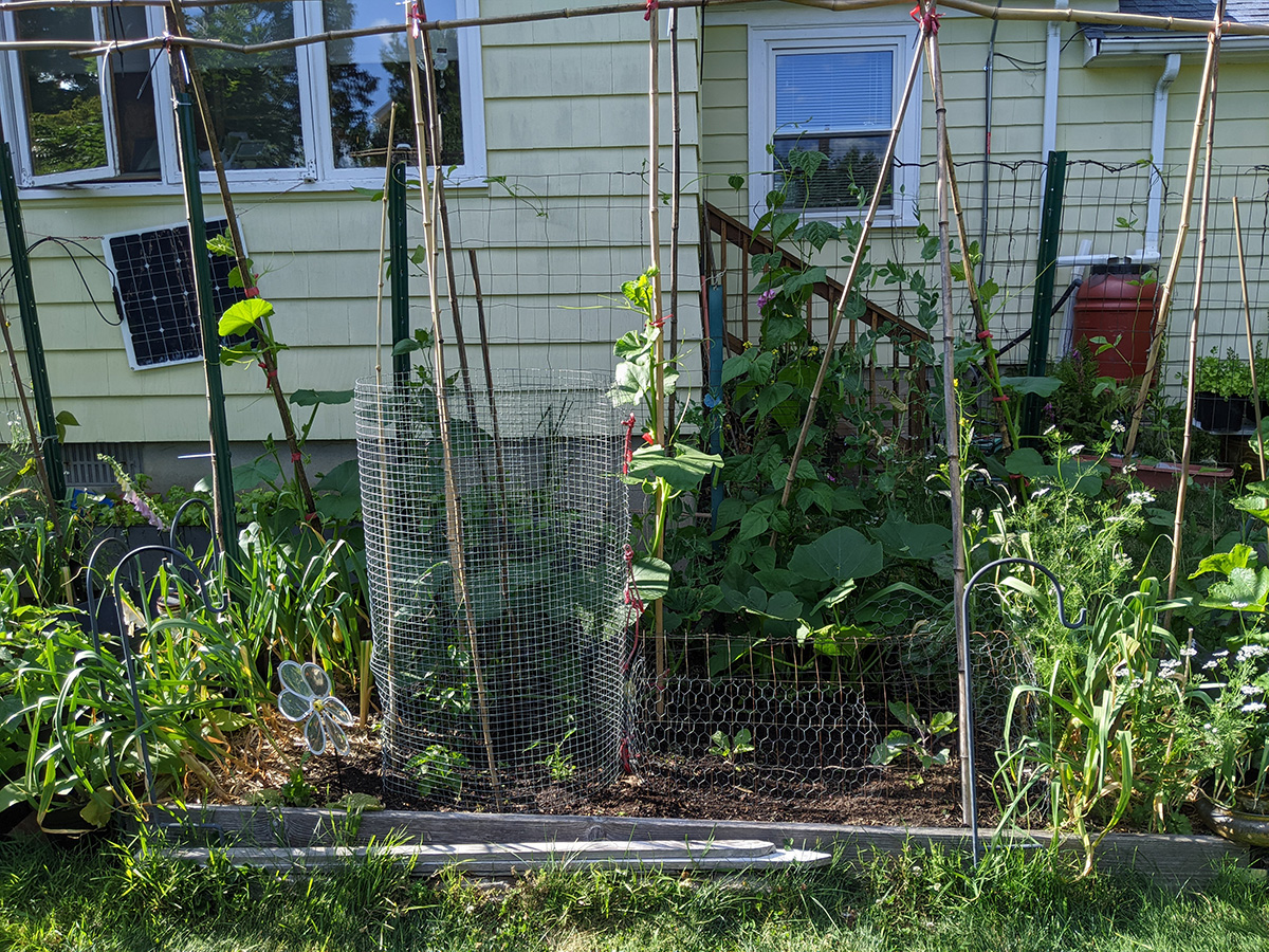 we returned home by 2:45pm. i went to the backyard to remove squash vine borer eggs from the squash plants with a piece of sticky duct tape. my father and i also removed the milk cartons and plastic containers protecting our eggplants and peppers and made bigger circular cages instead; cages are better (provided the holes aren't big enough for rabbits to get inside) because it allows the plants access to sunlight and water. we repotted the two lemon verbana; these plants really love water and growing them in smaller pots meant they're constantly dry, so we gave them a bigger pot to grow. a bottom layer of potting soil, a middle layer of compost, then some fermented soy bean paste (smells like a chinese public toilet), finally a top layer of potting soil again. i also sprayed the potted plants with neem oil, and a few garden plants with insecticidal soap (aphids on some nasturtiums and a few squash leaves). finally i watered the 3 remaining orchids that've yet to flower. i added some orchid fertilizer to the water along with mosquito bits to get rid of potential fungus gnats.
