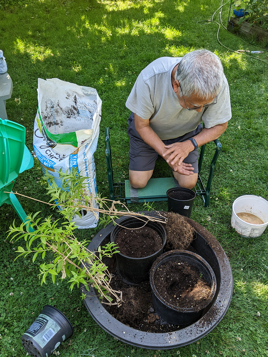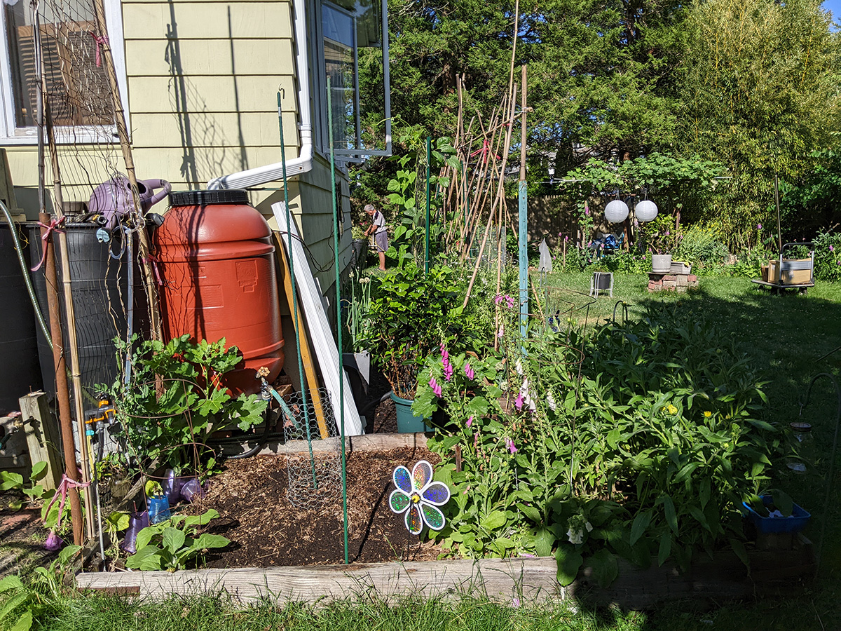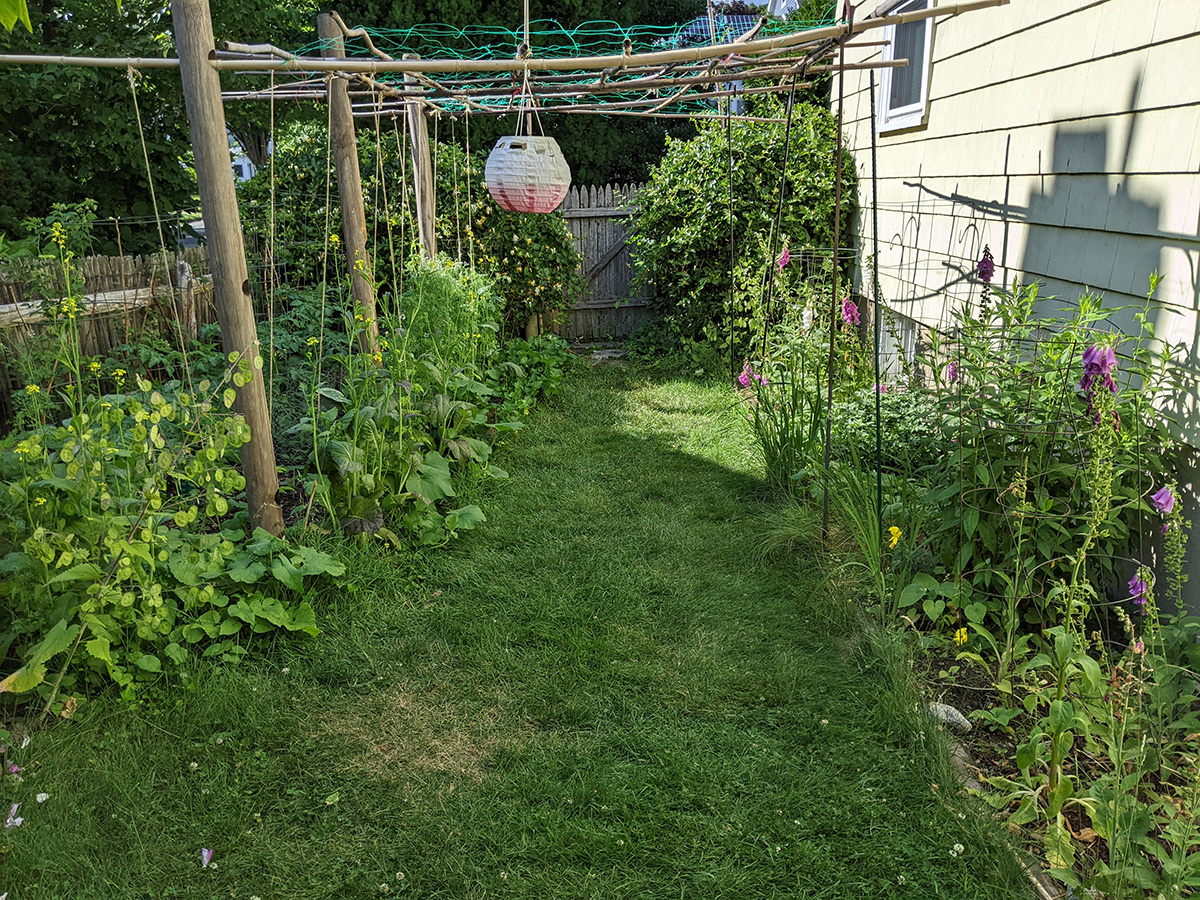 we returned home by 2:45pm. i went to the backyard to remove squash vine borer eggs from the squash plants with a piece of sticky duct tape. my father and i also removed the milk cartons and plastic containers protecting our eggplants and peppers and made bigger circular cages instead; cages are better (provided the holes aren't big enough for rabbits to get inside) because it allows the plants access to sunlight and water. we repotted the two lemon verbana; these plants really love water and growing them in smaller pots meant they're constantly dry, so we gave them a bigger pot to grow. a bottom layer of potting soil, a middle layer of compost, then some fermented soy bean paste (smells like a chinese public toilet), finally a top layer of potting soil again. i also sprayed the potted plants with neem oil, and a few garden plants with insecticidal soap (aphids on some nasturtiums and a few squash leaves). finally i watered the 3 remaining orchids that've yet to flower. i added some orchid fertilizer to the water along with mosquito bits to get rid of potential fungus gnats.