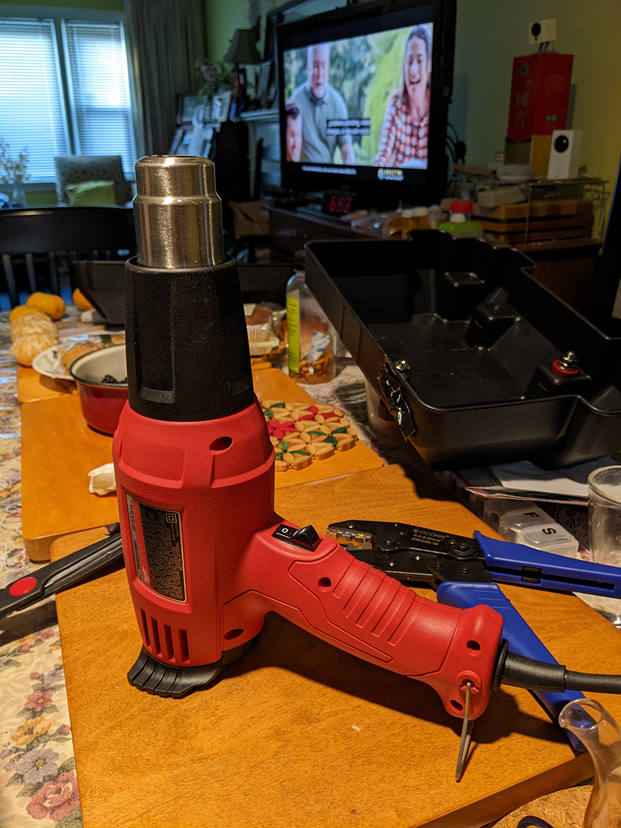 i stopped by the cafe to find the heat gun. in a year at most i might come to the cafe when it's closed only once. i had two keys - front and back - but i don't know which is which, so it took me a while to figure it out. i narrowed it down to the last time i used the heat gun was to strip paint from my sister's front porch when i repainted it 4 years ago. rummaging in the basement, i finally found one (we have at least 2-3). i need the heat gun to seal the heat shrink tubing for our battery box lug nuts.