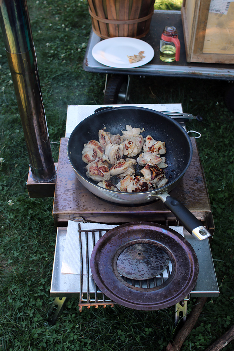 even though it was super hot today, my father set up his stainless steel tent stove in the backyard. he moved it away from the neighbor's this time, but almost underneath the maple tree, where the hot smoke might singe the leaves. nevertheless, it still got really smokey whenever he fed the stove with new wood, especially freshly cut wood that hasn't dried completely yet, as well as unwanted bamboo segments, and i'm sure the wood smoke managed to get into some neighbors' houses.