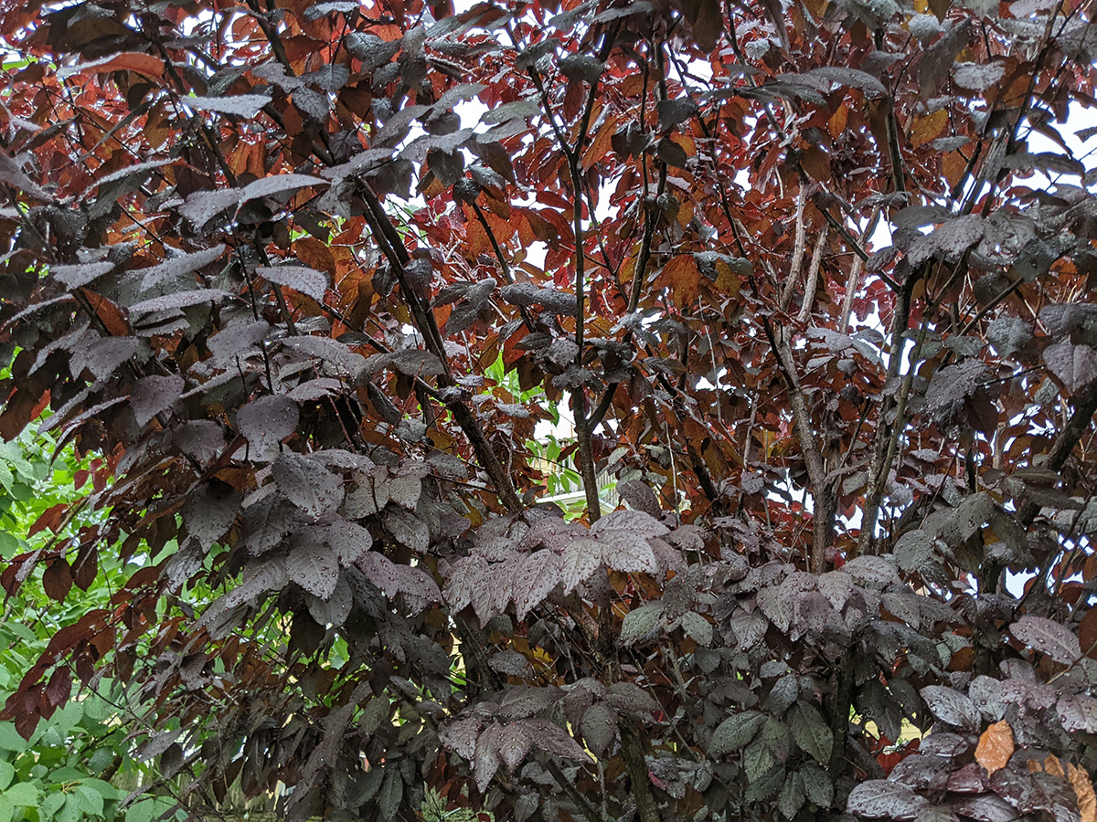 we did prune the home depot osmanthus. we cut it back down to half its original size. my father originally thought about propagating some more plants with the cuttings, but this is not the osmanthus we want - that one - the fudingzhu osmanthus - seems to be thoroughly dead at this point. we'll need to buy another one at some point.
