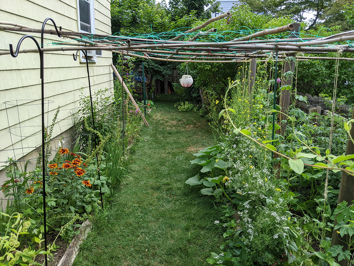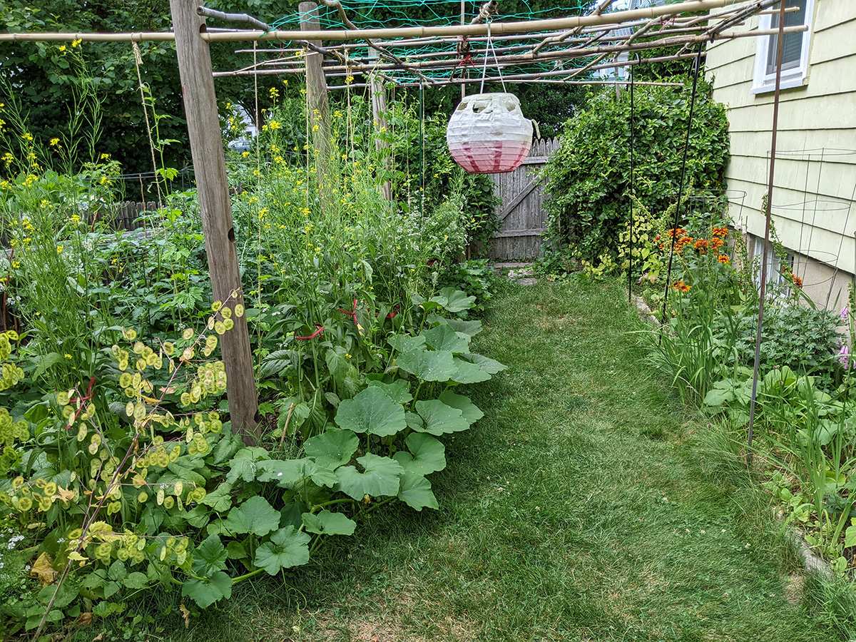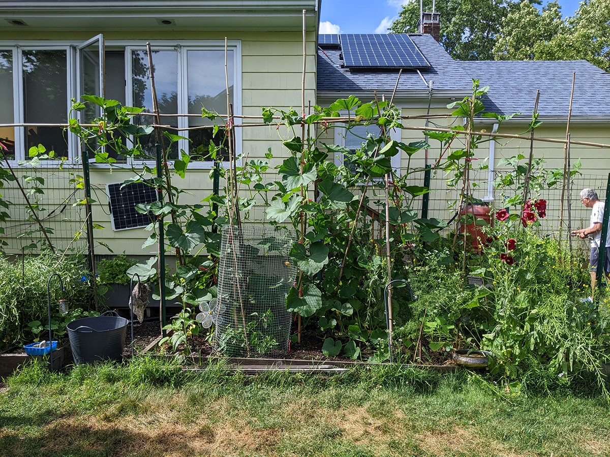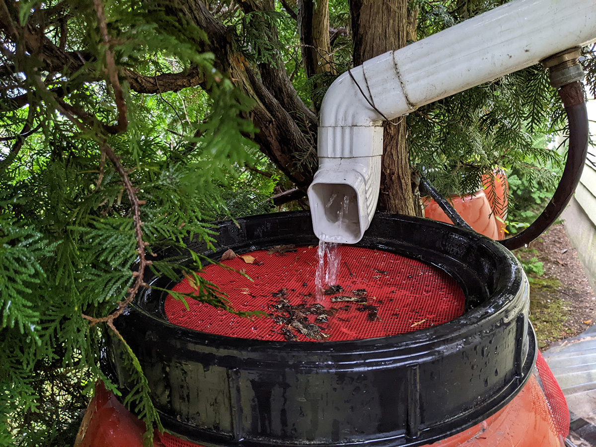 while we were eating it finally started to rain. it seemed like a few sprinkles at best, but it developed into a medium-size rain, one that was on course to fill up our rain barrels, which were down to 2/3 capacity. if we can get one big rainstorm every week, we'll never have to worry about the barrels going empty again.