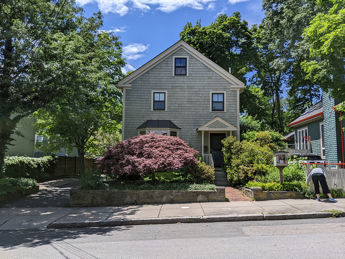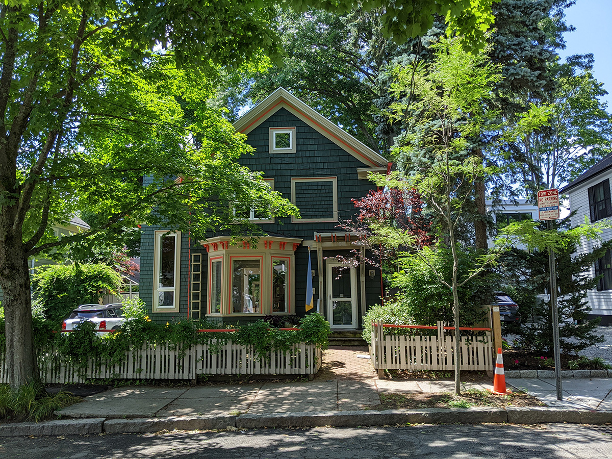 from there we went down holworthy street. we were hoping to see some interesting flowers, but either they weren't in season, or the neighbors there simply didn't plant very many. we came out at sofra bakery, then walked belmont street back home.