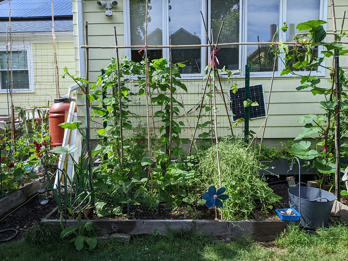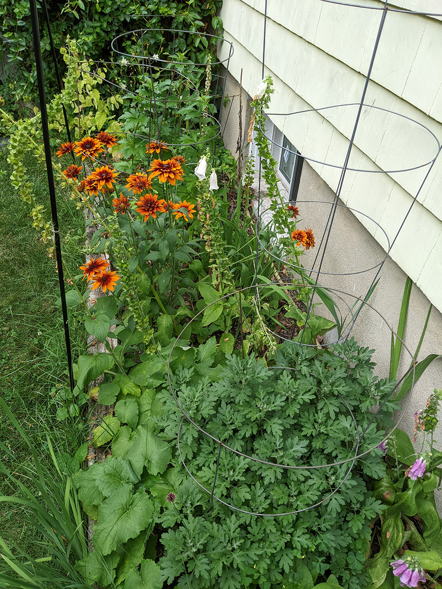my favorite part of the backyard this season is the rudbeckia field in RB3. the yellow flowers with dark centers are very striking, and it was just a happy accident that rabbits tend to avoid them for other plants. last year we didn't get any flowers because the plants were all growing too close together. this season - back in the spring - we divided the plants, and now they're growing very well. being perennials, we hope to see them every year.