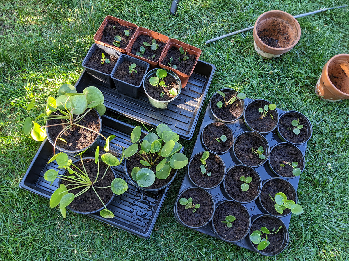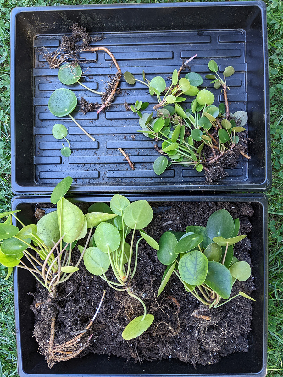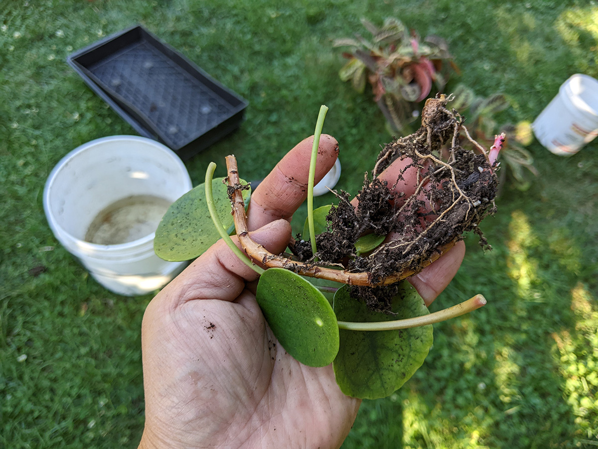 in the late afternoon i did some houseplant maintenance. i moved out all the remaining houseplants - orchids, pileas, prayer plants, jade plants - so i could water them. the 3 orchids i water using a submersion technique doused with some special orchid fertilizer. i left each pot to soak for a while before soaking another pot. as for the other plants, i water them with mosquito-bit-infused water, to kill the fungus gnats. i may need to divide my prayer plants and repot them, the soil looks a bit dry. i did however divide the pileas though: there were 3 plants that were crowded with babies. i removed them for their pots then pruned off the buds so i could replant them. from 3 pilea plants i ended up with 20 babies. not sure what i'm going to do with them all, either give them away or sell them, provided they can survive the transplant.