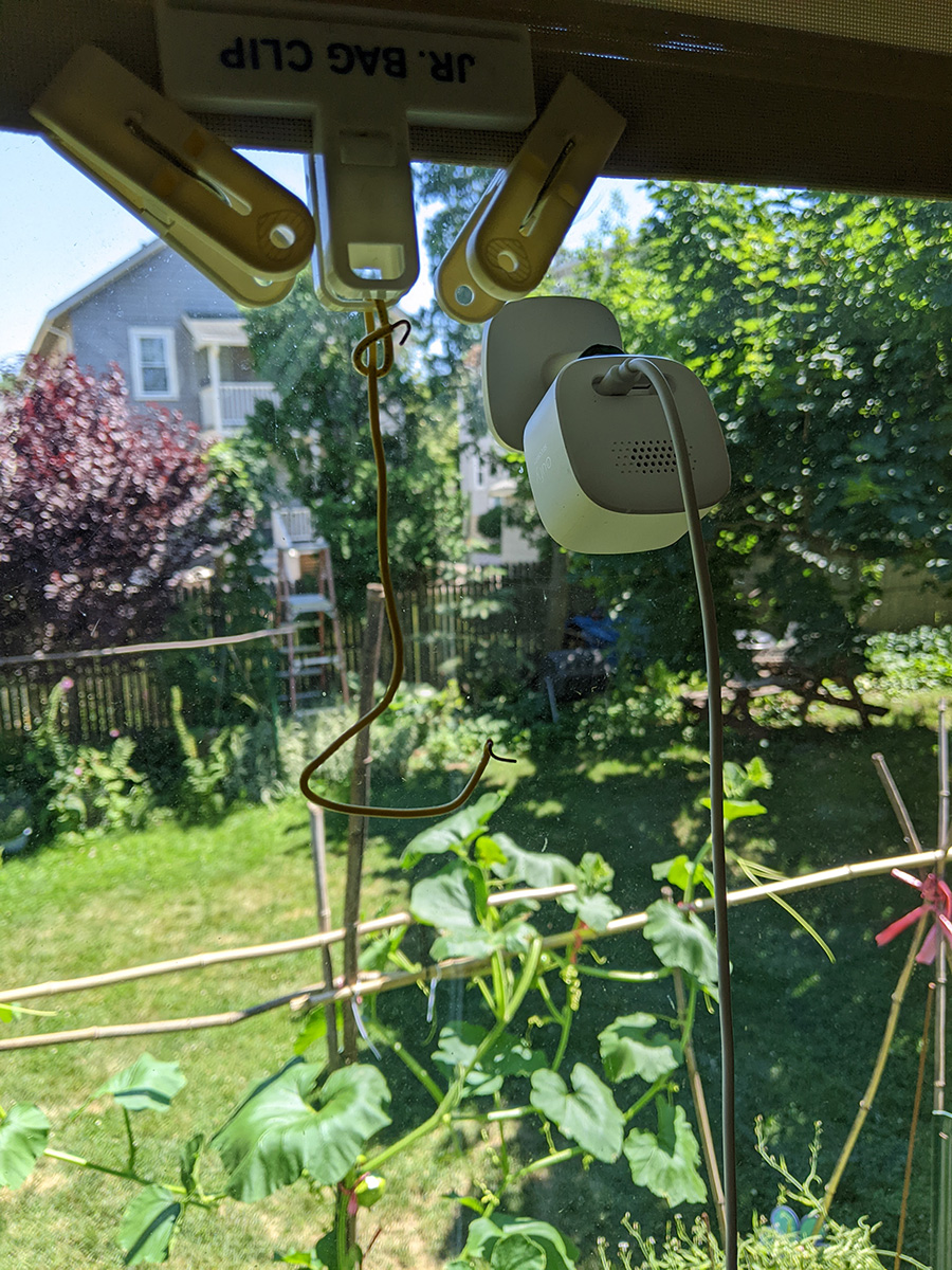 i remounted the sun room webcam that looks into the backyard. the way i had it before was it was just sitting on the windowsill. that used to work, but now with our plants starting to fill out the trellises, the view will be obstructed, so the camera should be mounted higher. i used nano double-sided tape to secure the mounting plate to the window. it works well, but because now the camera is in front of the khaki-colored sun shade, the bright glare from the shades washes out the image. i'll try experimenting with the 37mm circular polarizing filter that came a few days ago, maybe that will help.