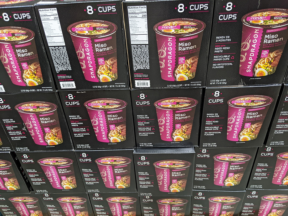 we finally left for the waltham costco by 11:30am, getting there 20 minutes later. costco was crowded - which is typical for the weekend - but it wasn't crazy. i was hoping there might be some fans on sale but apparently they're only available online, none in the store. i noticed there some more asian foods i'd never seen before: 2 types of instant taiwanese boba drinks, taiwanese sticky rice, frozen durian pulp, sichuan mapo tofu, and instant sapporo-style miso ramen. my mother bought a large potted lavender ($18, not english, looks like spanish, though i'm not well-versed in my lavenders).