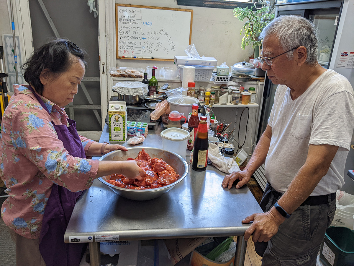we finished shopping by 12:30pm, then drove to the cafe to drop off the supplies. my parents marinated some charsiu pork before we left.