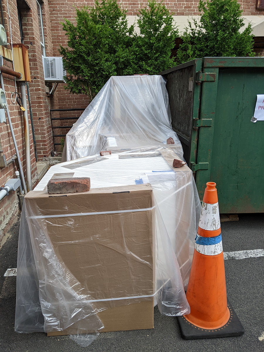 i returned to the cafe by 2:30pm. my father and i placed the tarps on top of the replacement countertops, which was delivered this morning. there's no place for them inside the cafe, so they'll sit out overnight. we placed the tarps just in case it might rain.