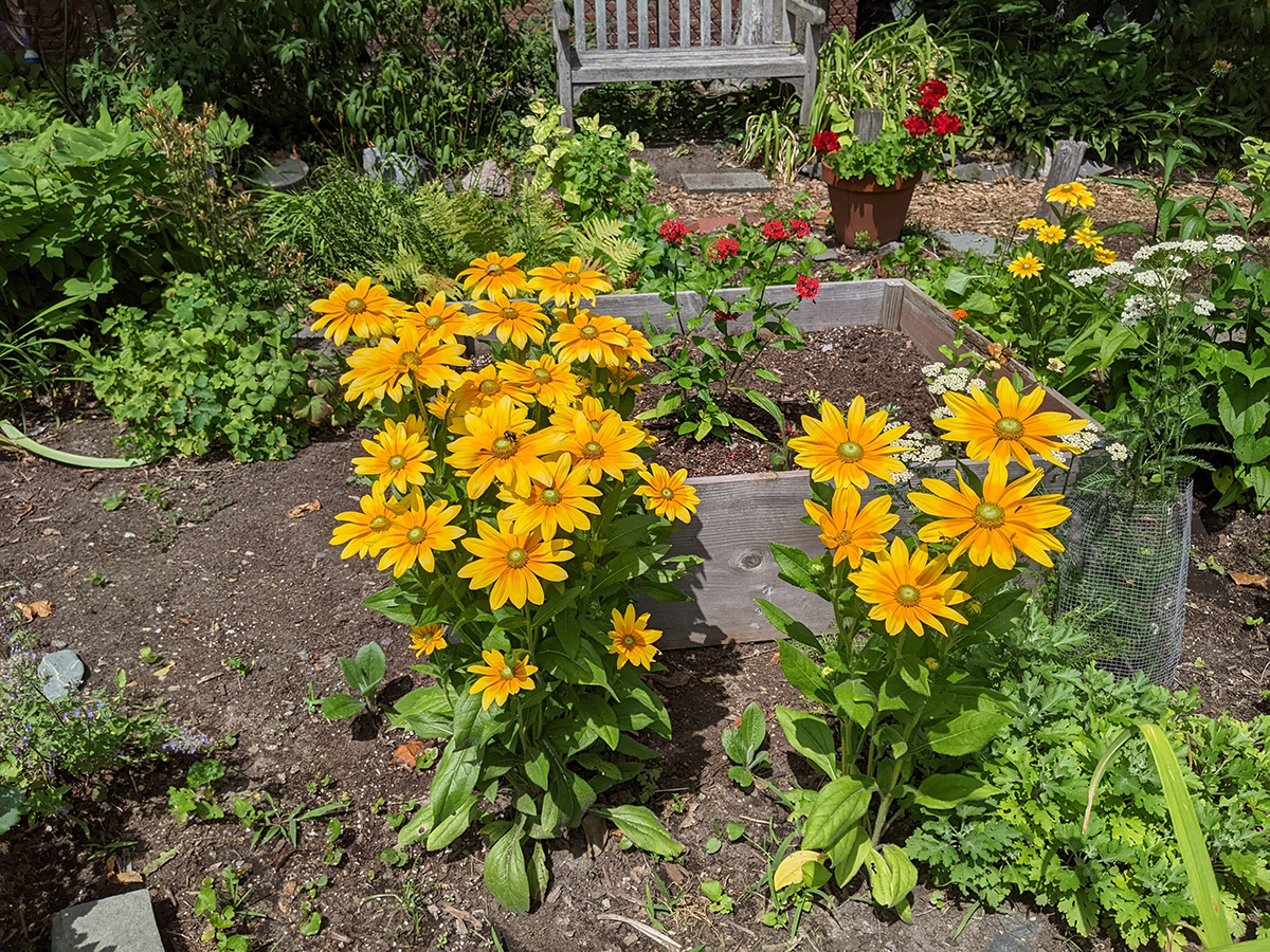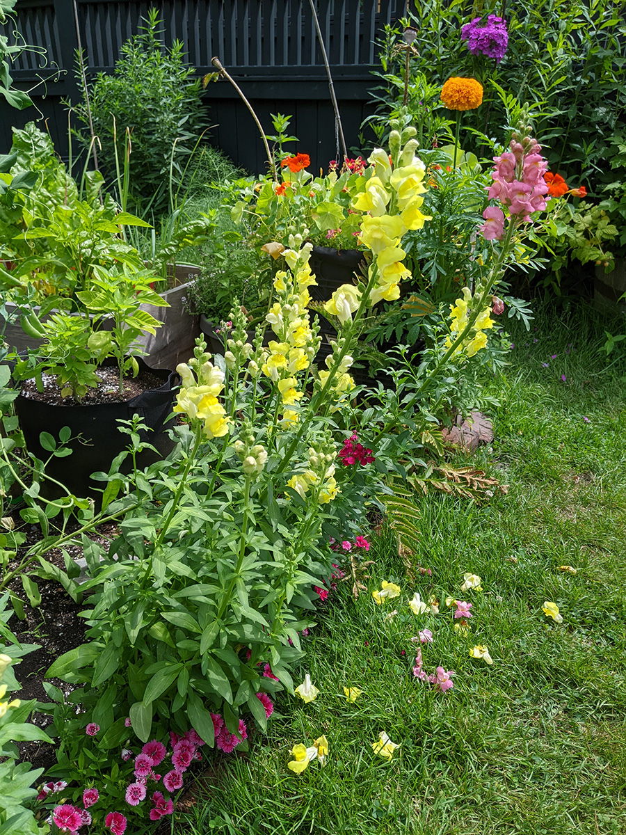 in the rest of the community garden, i see a lot of lilies are blooming. saw some pretty rudbeckias (a different variety than the ones i have in my parents' backyard), and some snapdragons.