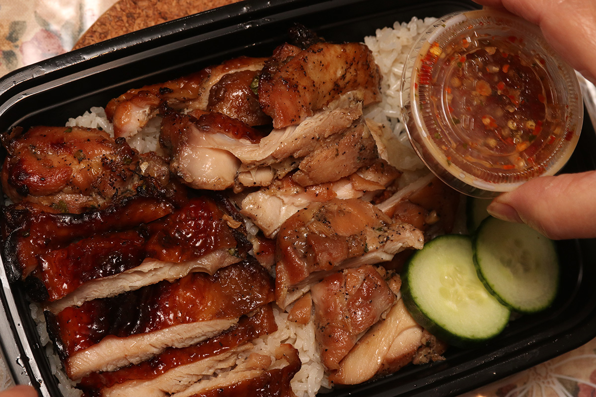 i went inside to order some thai chicken and rice online for pickup before going outside again.