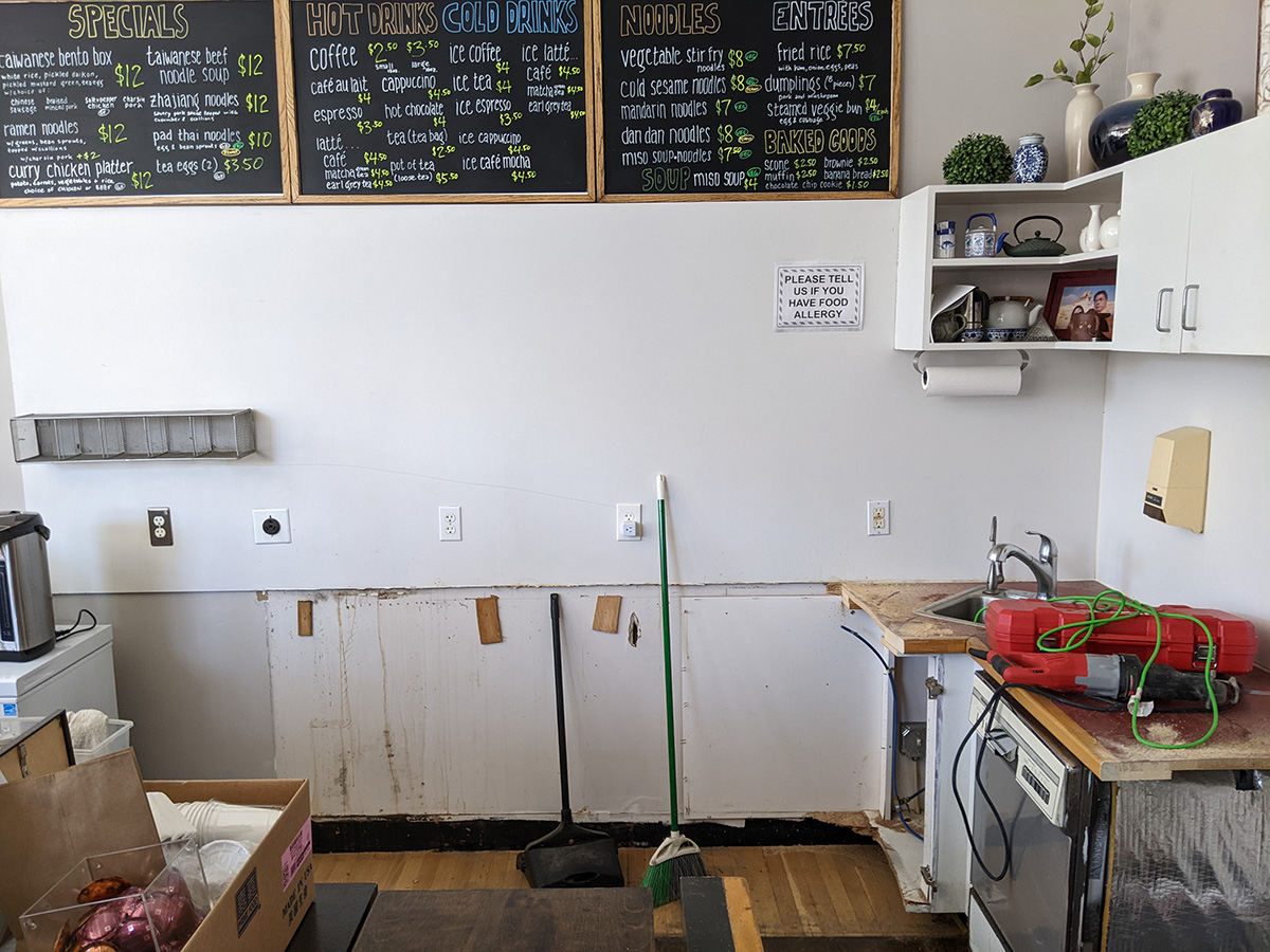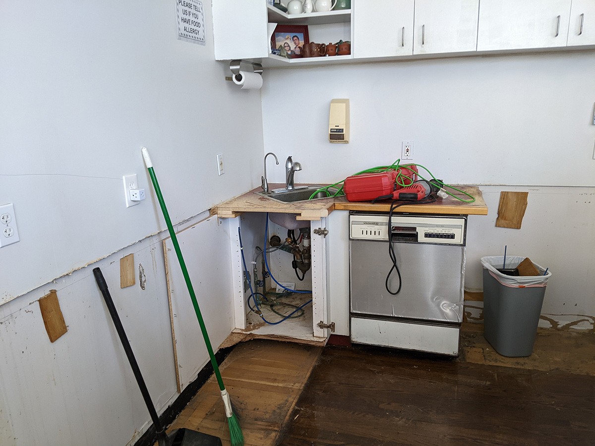 the whole reason why we were replacing te counter was because the old bunn coffee brewer broke (burst the tank) and leaked back in february, soaking and warping the countertop and cabinets. my sister file an insurance claim (with corroborating evidence courtesy of several webcams) and they gave us the money to replace all the damaged equipment.