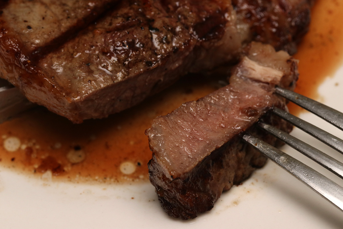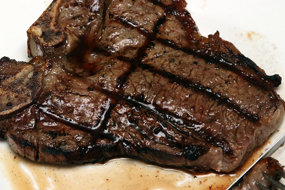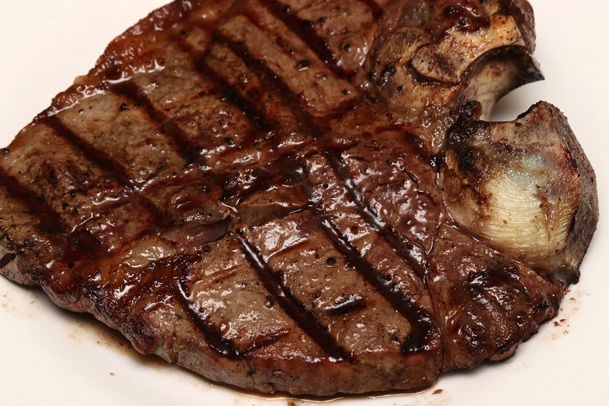 the rain finally stopped about 5:30pm, which allowed us to go outside and grill the 3 pieces of porterhouse steaks and 2 porkchops. we preheated the barbecue up to 550 degrees before adding the meats. earlier we'd taken out the steaks and i'd seasoned them with salt and pepper. my father also brushed some butter on the steaks before grilling, to additional flavor and to prevent them from sticking. we decided on 3 minutes per side for medium-rare, but added another minute to each side when it looked like they were completely done yet. that turned out to be a mistake, as the steaks came out medium doneness. next time, stick to the 3-minutes-per-side rule, and let the meat continue to cook in its own juices.