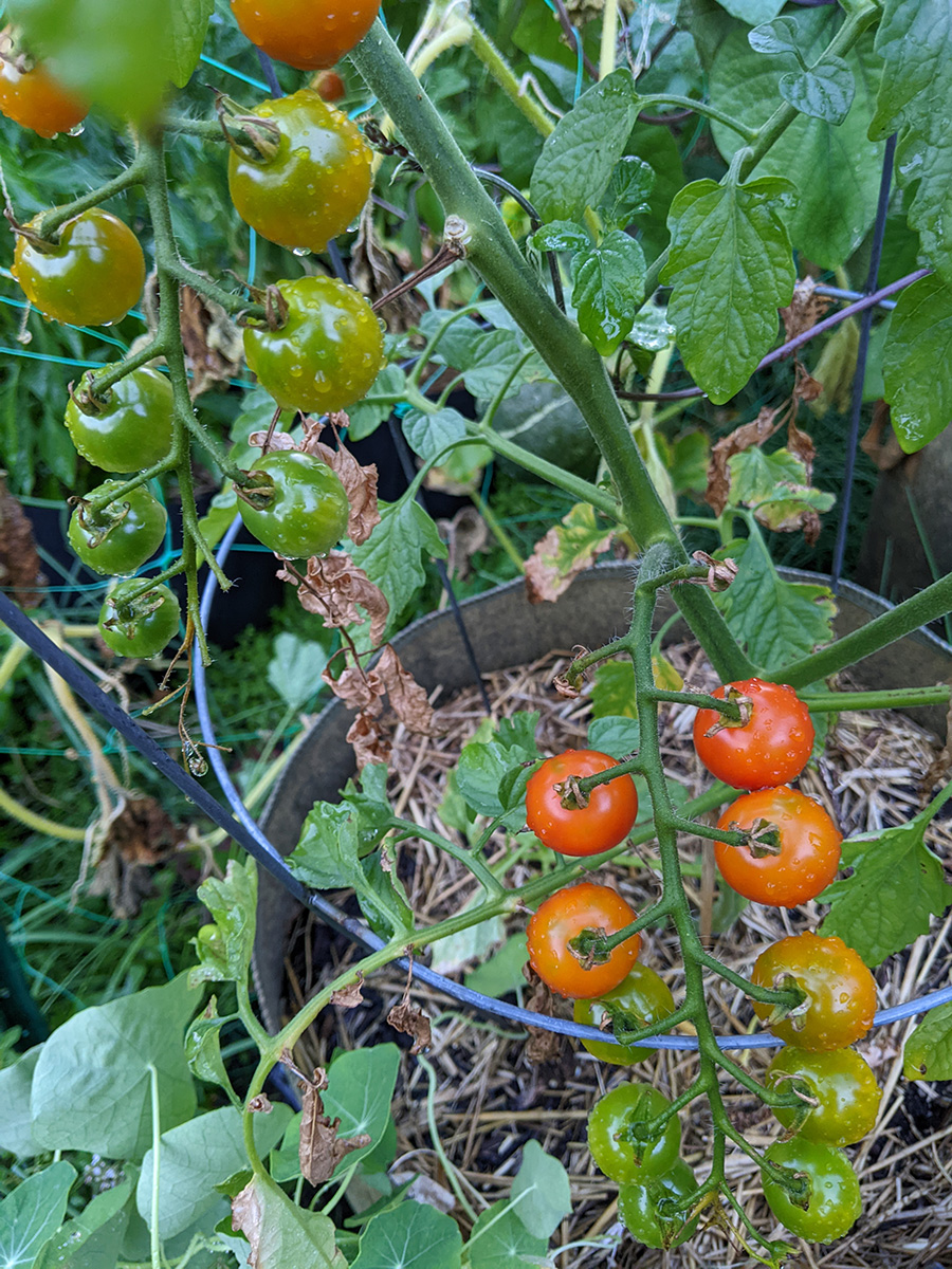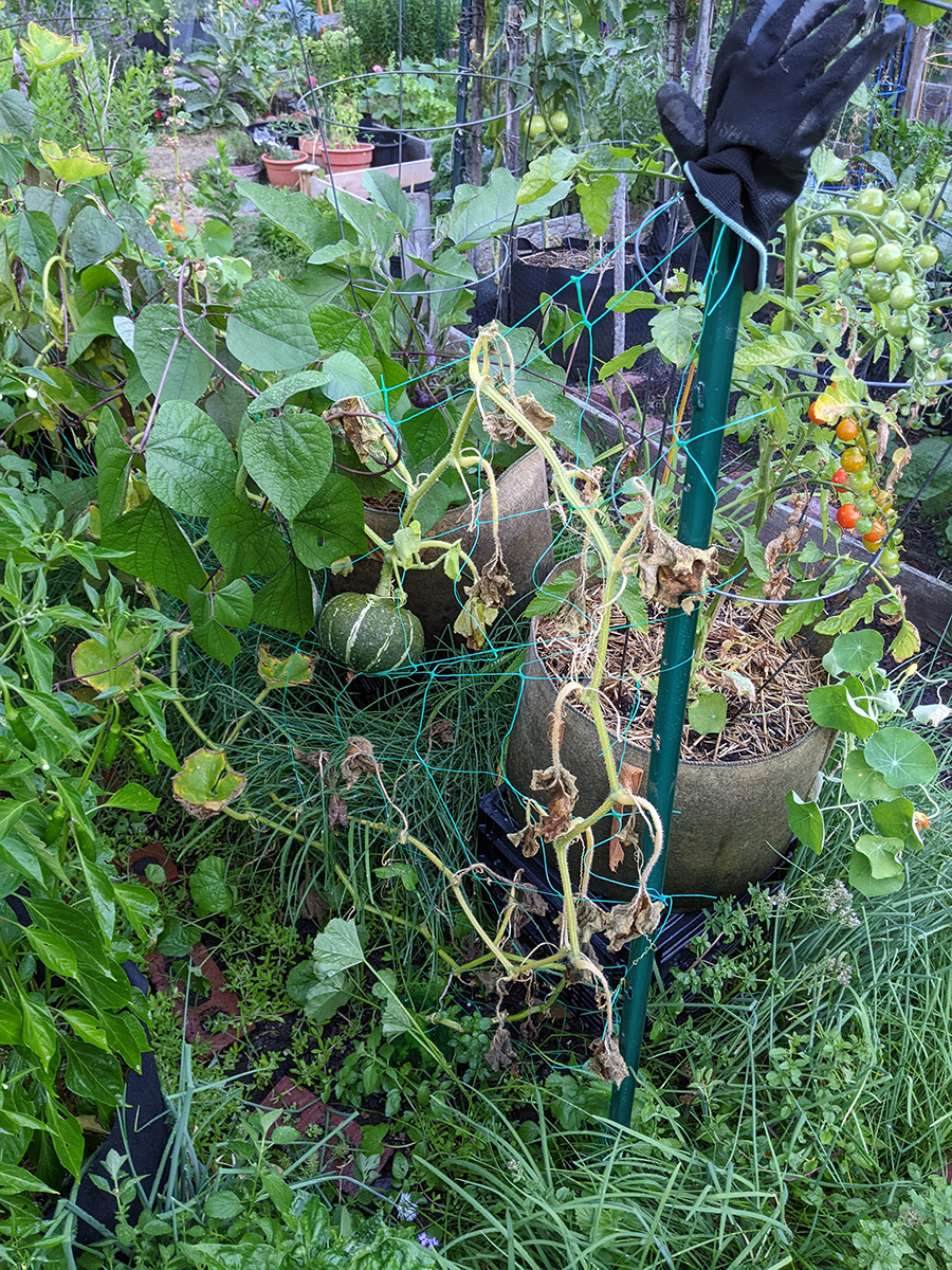the first thing i did when i got back home was turn on the AC: it was 87 degrees inside the house. i then walked down to the community garden to water my plants.
