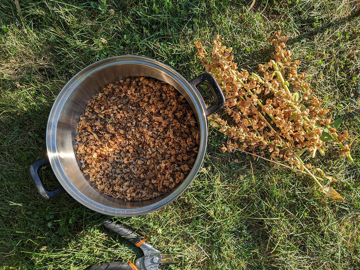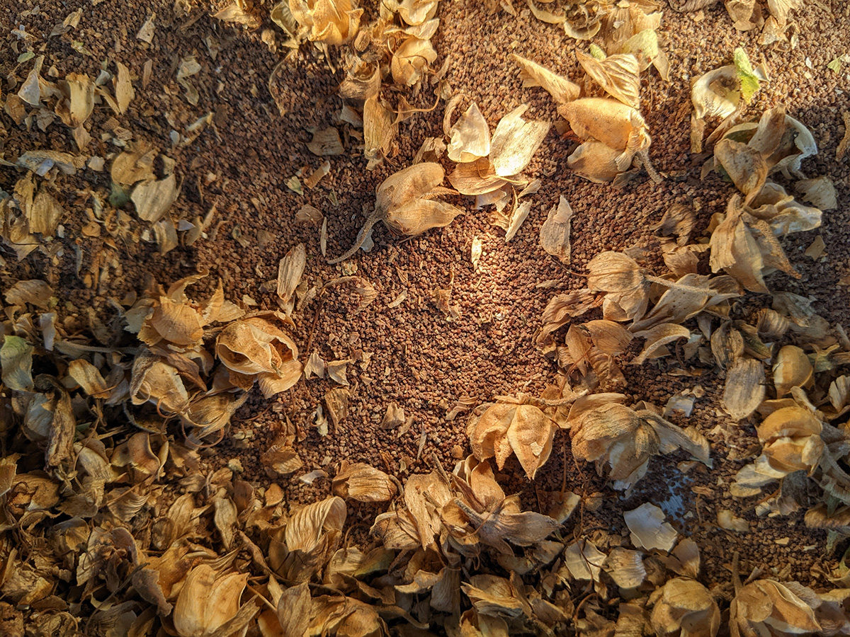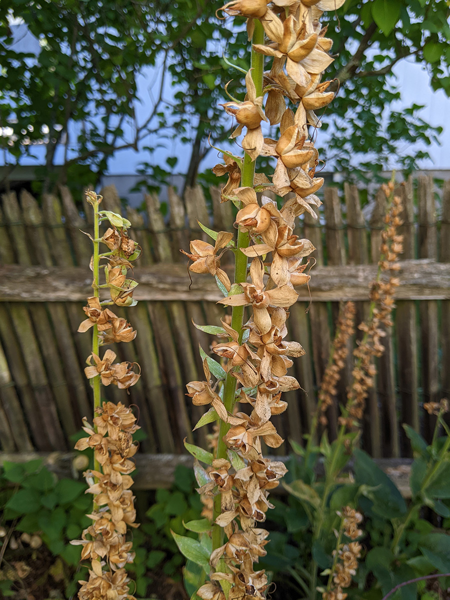 my parents didn't return until 4pm. my father went out into the backyard to collect some seeds (japanese red mustard, cilantro). i joined him a bit later, collecting foxglove seeds. i made the mistake of collecting all the stalks first, when i should've just cut the stalks and then shake the tiny seeds into a container. now i need to sift through the shells to collect all the seeds. foxglove seeds are so weird: the plants produce an abundance of seeds, but only a few will ever make it to adulthood. i don't remember raising foxgloves from seeds, but i must've done it at some point to start the initial batch (after some research, i found out i started the original batch of foxglove seeds back in april 2015; by june i had way more seedlings that i knew what to do with; late in november i dug them up and moved them to various parts of the yard, thus starting our self-sowing foxglove population).