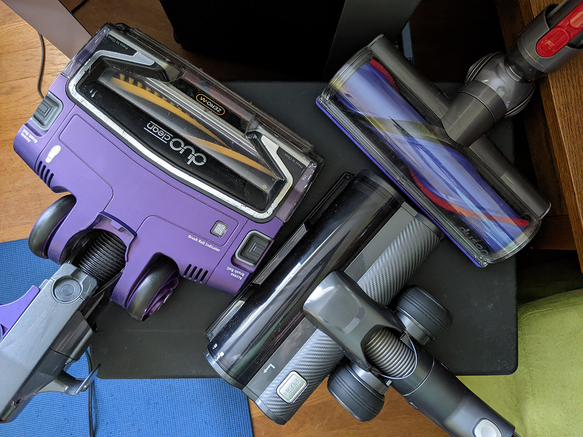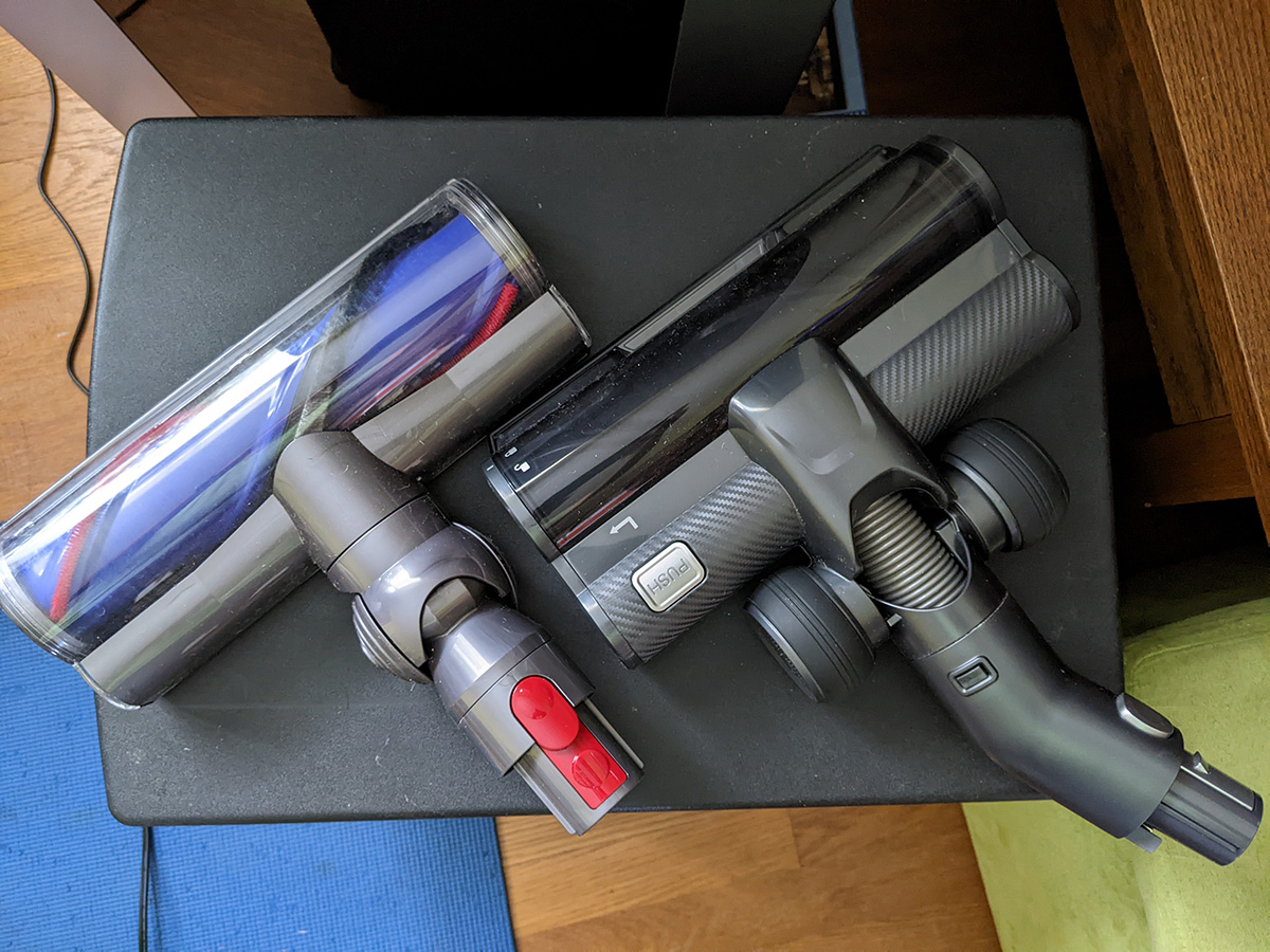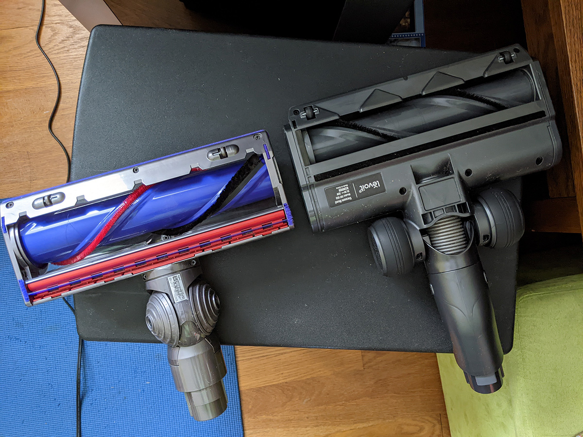 i continued testing the various vacuums, even though we already decided to return the dyson. my sister was here earlier, and i showed her how much better the levoit was compared to the dyson, but she's pro-dyson (being otherwise would mean her $300-400 vacuum purchase was a mistake), even though it's the weaker machine in all categories (performance, ease of use, power, price). out of curiosity i plugged in the corded shark vacuum. since it doesn't run on a battery, it's much more powerful. but the shark vacuum wasn't designed for portability, so everything about it seems heavier after having used a cordless vac. the levoit is so good i'm tempted to retire the shark and replace it with that instead. while using the shark vac, i smelled dog dander. i opened up the filter compartment and decided to wash the dust-covered filters. i also disassembled the shark vacuum head: what i thought initially was a fuzzy brush head turned out to be caked on animal hair and dust. that would explain the smell! i scraped off the debris and clean the vacuum head of additional dust and hairs. the shark vacuum is relatively new - we got it back in september 2020 - but apparently i've never once cleaned the vacuum head before. from what i can remember of our old dyson DC47 canister vacuum, i had to clean the vacuum head all the time, it had a tendency to get long hairs tangle in the brush head.