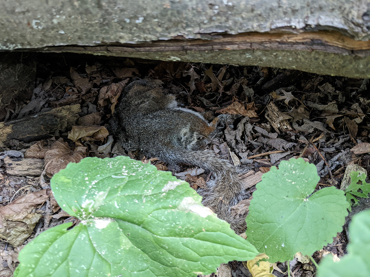 i noticed a weird smell in the backyard, like rotting seafood, and i casually said something died. neither my father and i thought much of it, but apparently he smelled it to and found the source of the odor: