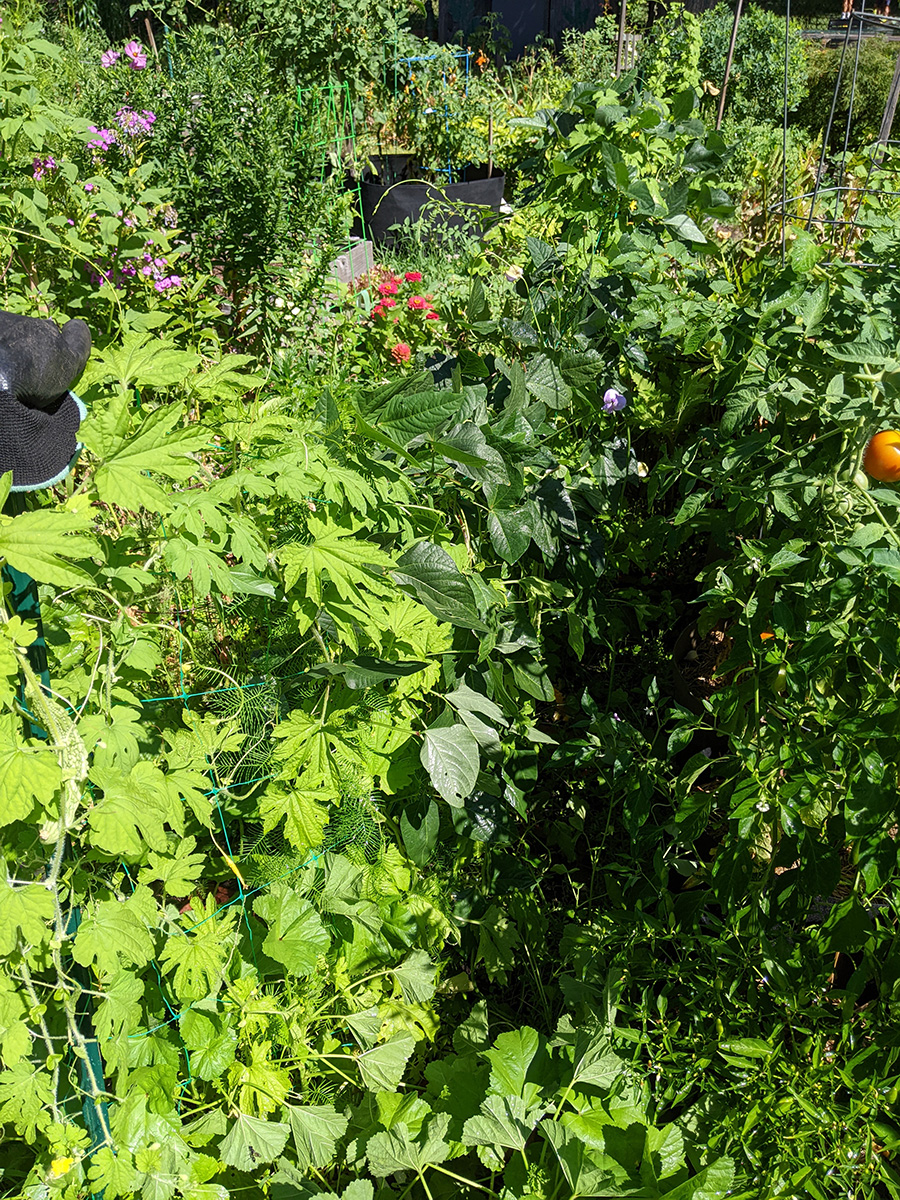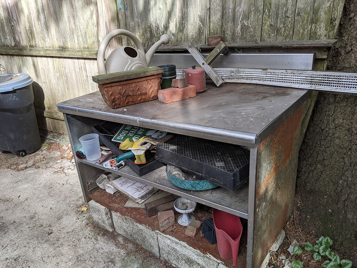 around 4pm - during yet another lull in customer traffic - i went outside with my gardening gloves to do some sidewalk cleanup. there are several sidewalk trees that i mulched back in the spring, but apparently i didn't do a good job (or didn't take time to upkeep them) because now they're chock full of weeds and trash. so i spent nearly an hour in the heat (though it wasn't too humid), pulling up the weeds, covering myself with soil dust. at some point i may also add some more mulch dressing. one good thing about this drought: even some of the weeds can't survive the lack of water. i also did some sweeping of my sister's backyard, she hasn't done any cleaning, it walkway areas look like a real dump.
