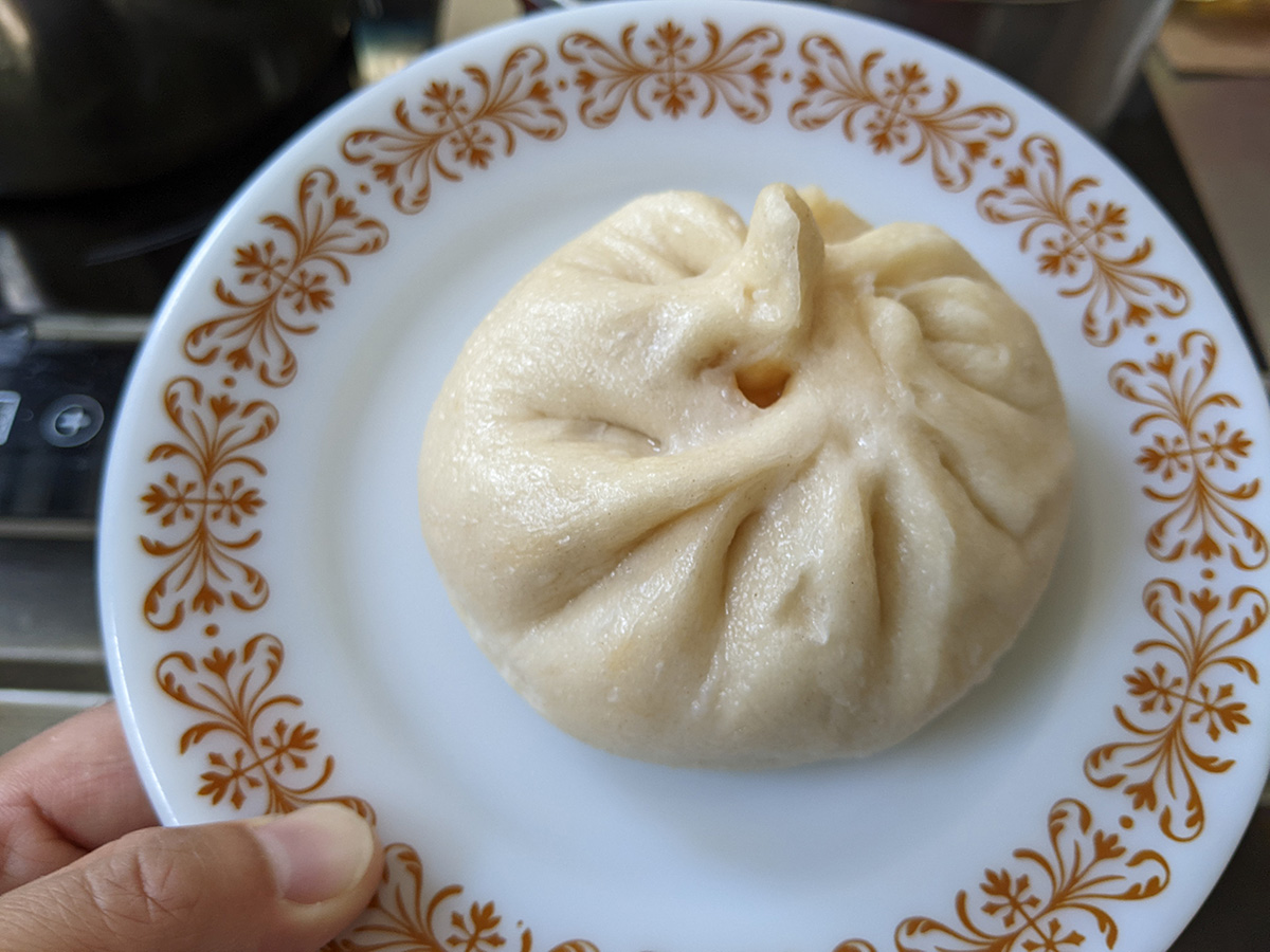 as soon as i arrived at the cafe, i set up the tables and chairs on the back patio, vacuumed the place with the cordless levoit, then made 20 new tea eggs. the day started slow, and it was starting to look like we wouldn't get any customers, but then it turned busy. i didn't eat anything with the exception of a perfectly good tea egg that a customer never touched, so when nobody was looking, i ate the whole thing, damn what anybody thinks. my 2nd aunt got come meat buns from chinatown yesterday and brought them to the cafe for us to try; we warmed them up in the steamer, they were pretty good, but very doughy, more like a mantou with some pork filling.