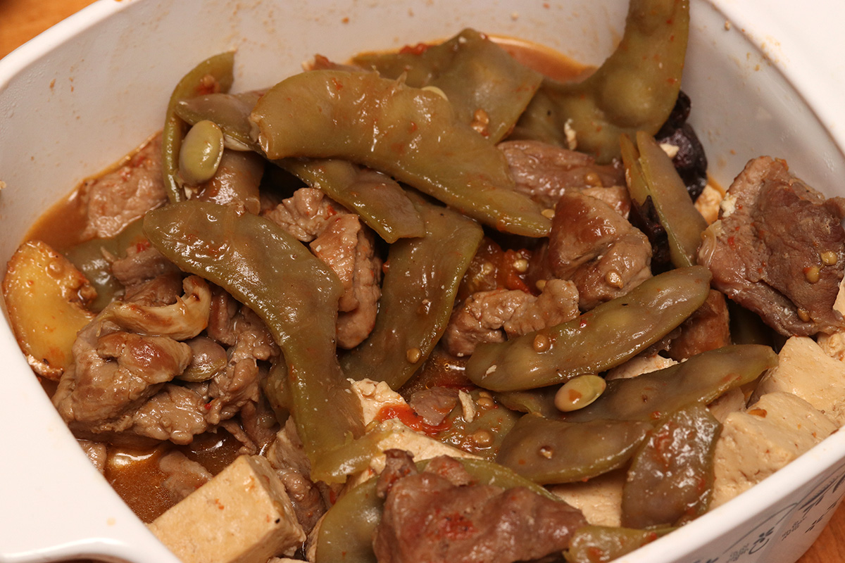 for dinner my mother cooked up some blue beans she'd collected from the backyard. there's a temporary moratorium on blue bean harvesting after my parents opened one of the older pods and saw there was very little beans inside. they've eaten all the beans that've grown so far and we haven't collected any seeds for next year. especially ironic since my father had decided we will be growing a lot of these beans for next year because they're grow fast and produce tasty beans - so tasty in fact we don't have any more seeds for next season.