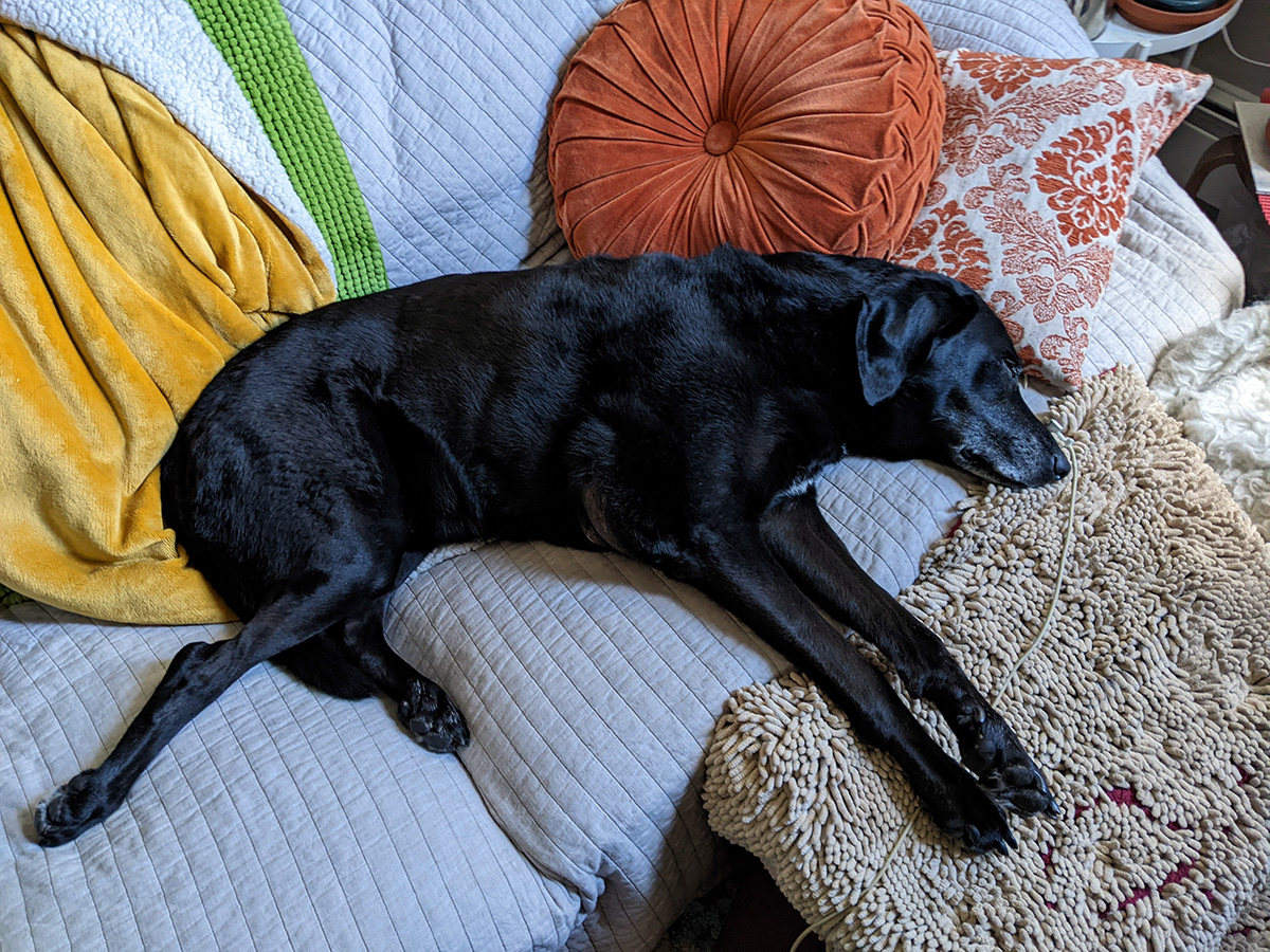 around 3pm i went over to my sister's place to let hailey out into the backyard so she could use the bathroom. i found hailey stretched out on the couch, in an unusually rigid position. when i called her name she didn't answer. i looked for signs of breathing and didn't see anything, and her eyes were partially opened. i thought i saw her snout move, and i had to shake her paw a few times before she finally came back to life. i gave her some treats before she got up and went outside on her own (i helped open the doors) to go pee before coming back inside.