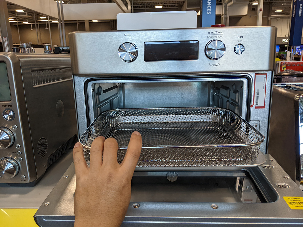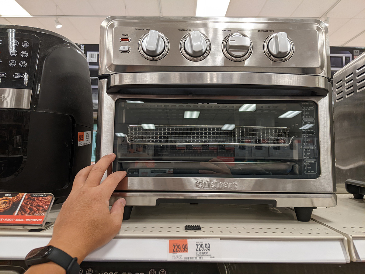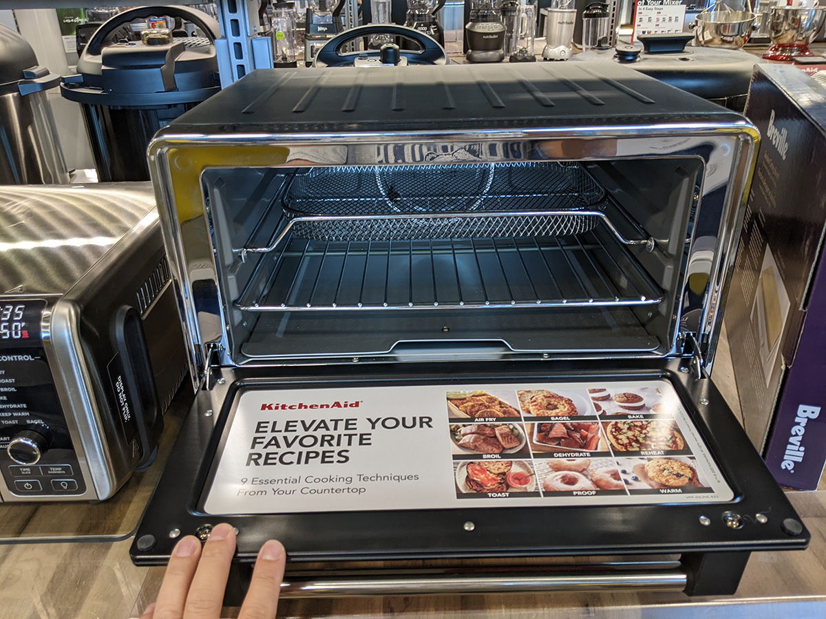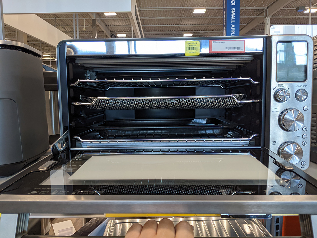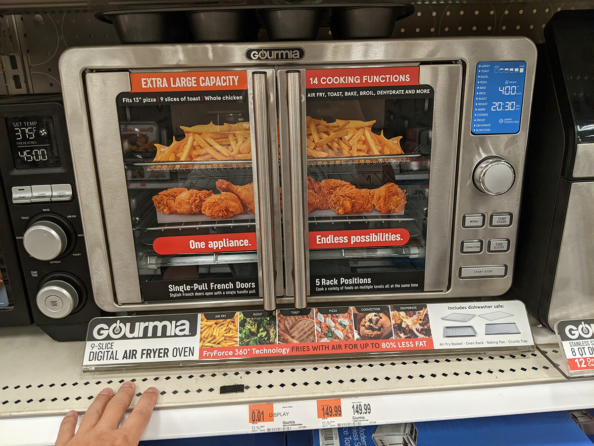 target had way better selection, though it seems the entire store is gearing up to supply college students. i did see floor models of the two ovens i'm most interested in: the oster XL air fry oven, and the ninja foodi XL pro air oven. they also had the calphalon air fry countertop oven out on display (they had one at best buy but it was boxed). i like the more rugged design, but i don't like there's only two rack position. far as these ovens go, the ninja seems to include the most accessories (2 wire racks, 1 air fry basket, 2 sheet pans, 2 roast pan), but the oster has the largest capacity, able to fit 2 16" pizzas. the knock on the oster ovens i've heard is the very thin glass door can get hot.