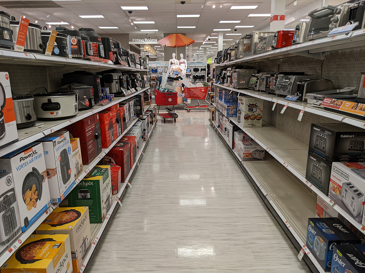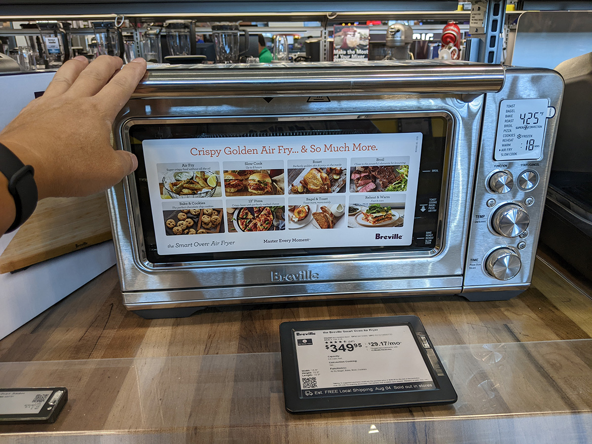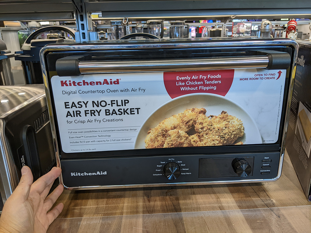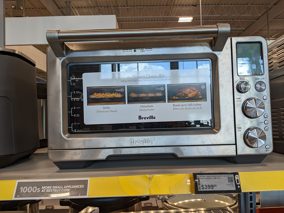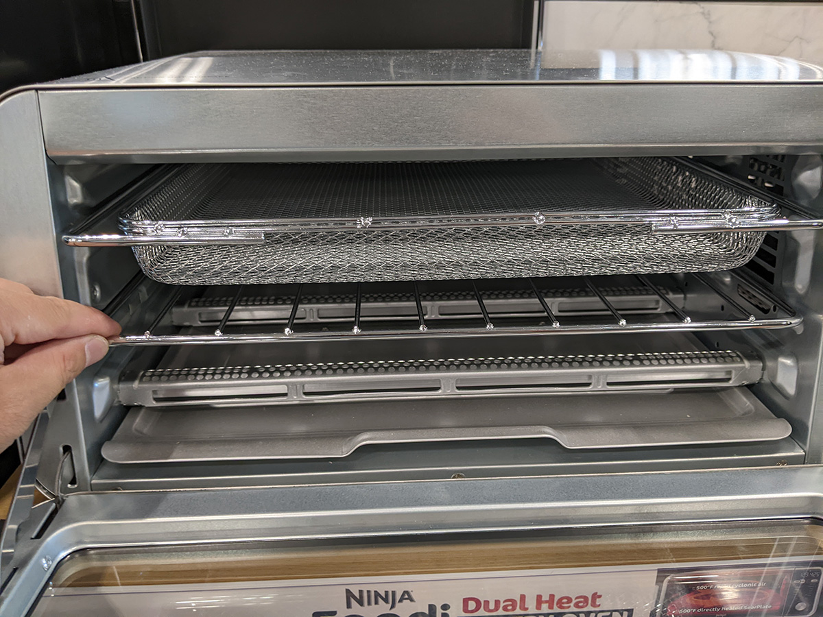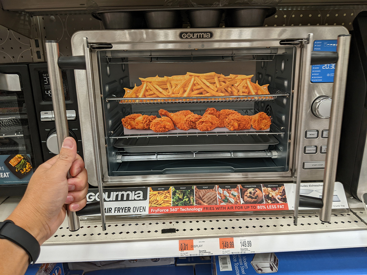 target had way better selection, though it seems the entire store is gearing up to supply college students. i did see floor models of the two ovens i'm most interested in: the oster XL air fry oven, and the ninja foodi XL pro air oven. they also had the calphalon air fry countertop oven out on display (they had one at best buy but it was boxed). i like the more rugged design, but i don't like there's only two rack position. far as these ovens go, the ninja seems to include the most accessories (2 wire racks, 1 air fry basket, 2 sheet pans, 2 roast pan), but the oster has the largest capacity, able to fit 2 16" pizzas. the knock on the oster ovens i've heard is the very thin glass door can get hot.