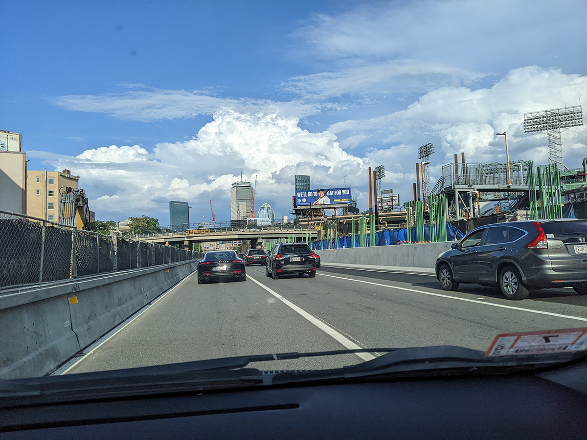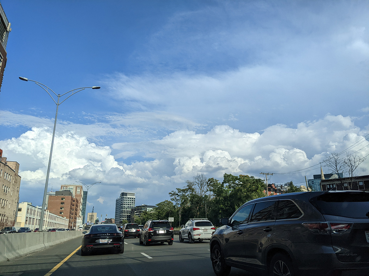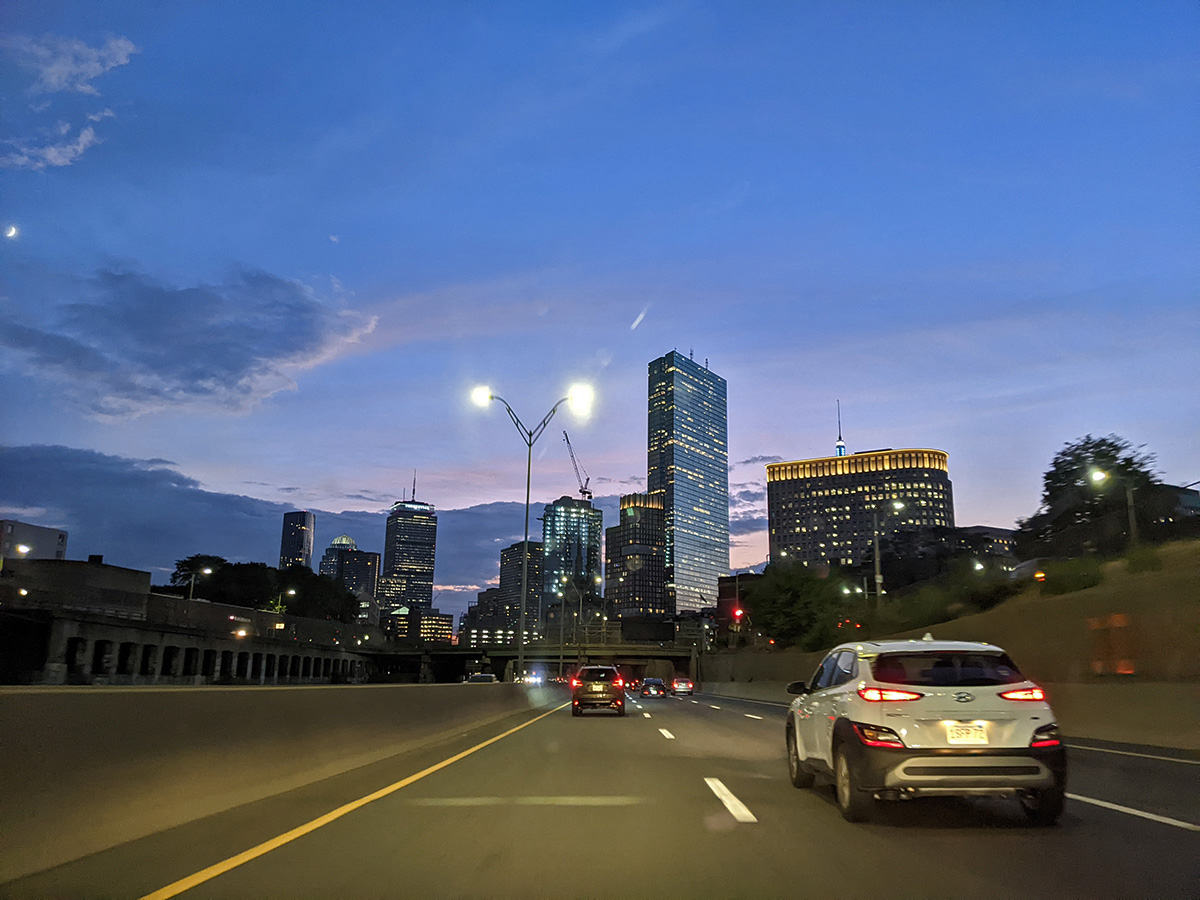 michael showed up at 5:30pm right when i was outside taking out the trash. we headed to dorchester, first getting onto the turnpike from cambridgeport, then taking the HOV lane on 93. it seems we were the only car in that lane, everyone else seemed to be driving solo, or weren't able to get into the express lane. that saved us a lot of time as we sped by the bumper-to-bumper traffic jam on I-93 south. having never been in michael's car before, i learned something: he's an aggressive driver! it gets us to where we want to go faster, but there were a few times when i thought we'd get into a collision.