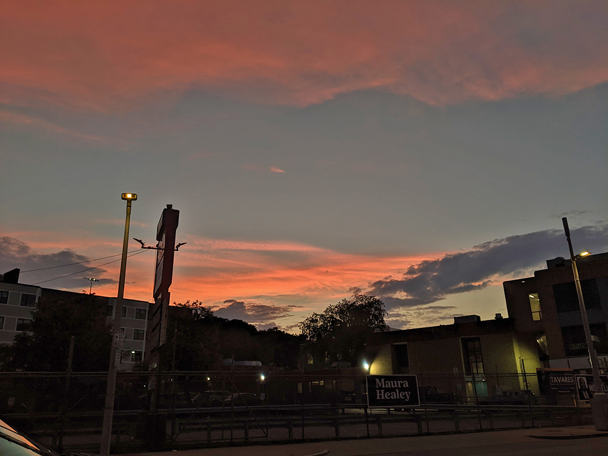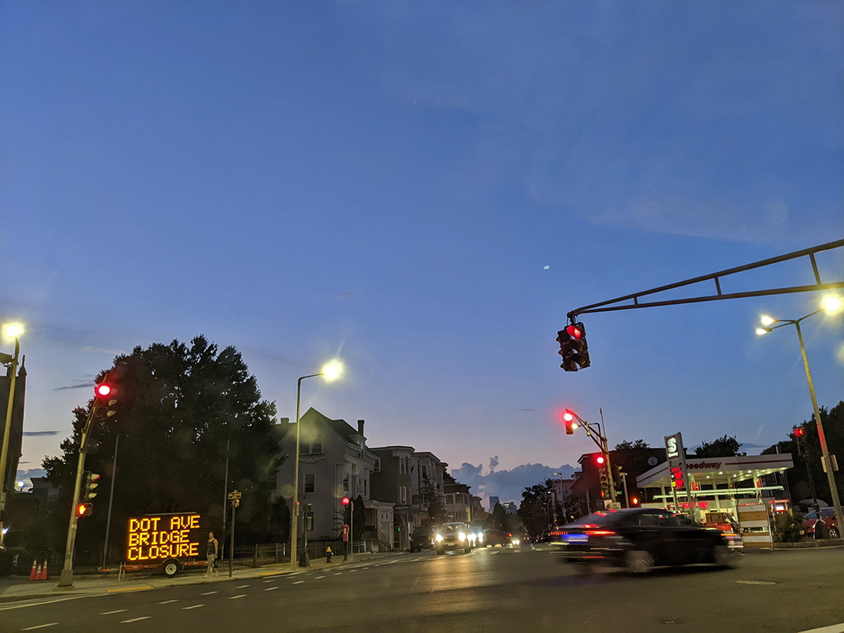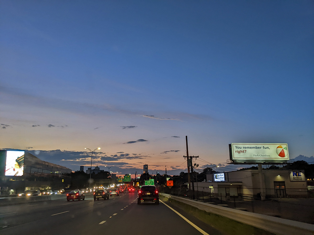 michael showed up at 5:30pm right when i was outside taking out the trash. we headed to dorchester, first getting onto the turnpike from cambridgeport, then taking the HOV lane on 93. it seems we were the only car in that lane, everyone else seemed to be driving solo, or weren't able to get into the express lane. that saved us a lot of time as we sped by the bumper-to-bumper traffic jam on I-93 south. having never been in michael's car before, i learned something: he's an aggressive driver! it gets us to where we want to go faster, but there were a few times when i thought we'd get into a collision.