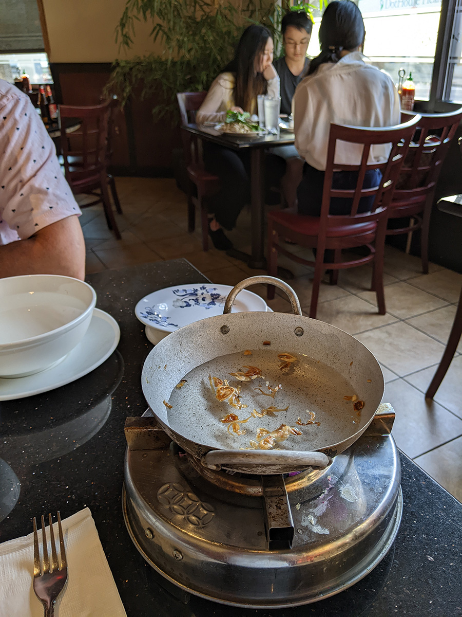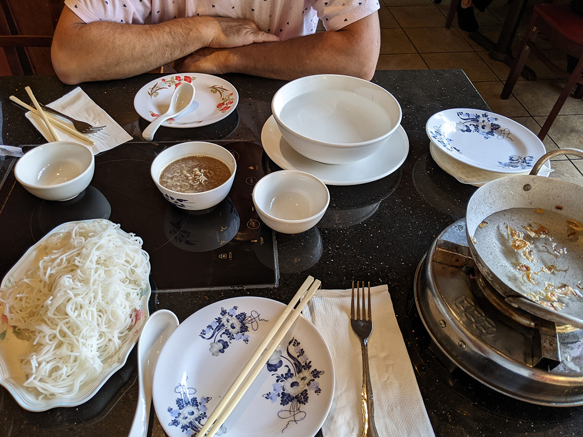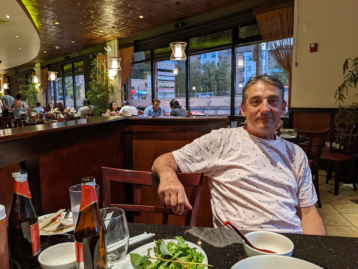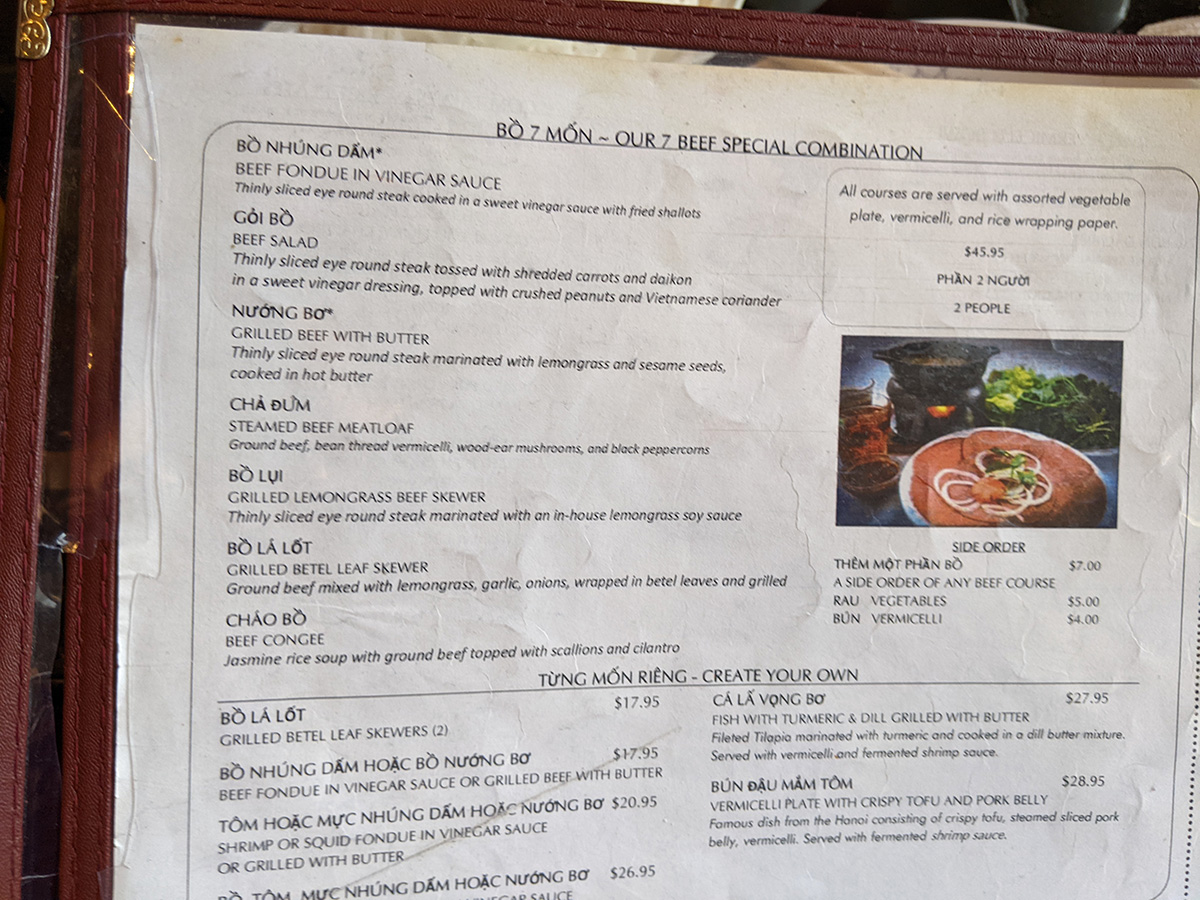 the waiter sat us by a window seat but we moved because the setting sun was shining right in my face. this was my first time eating out since the pandemic - so more than 2-1/2 years. the restaurant was doing good business, moderately busy on a tuesday night, mostly asian customers (i assume many vietnamese, but a table next to us was chinese) and a handful of non-asian customers as well.