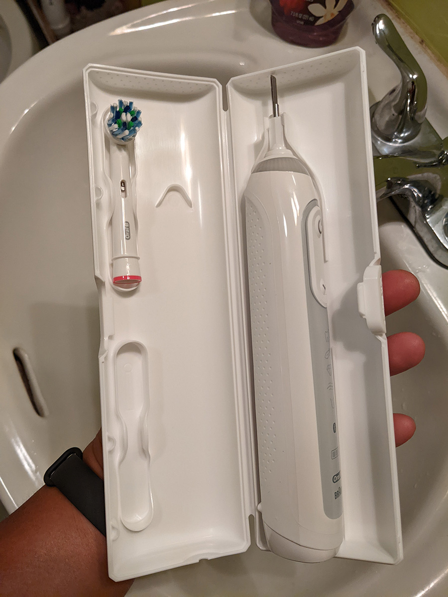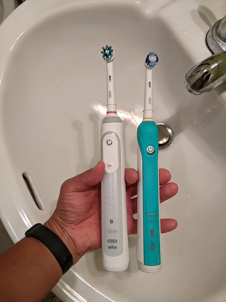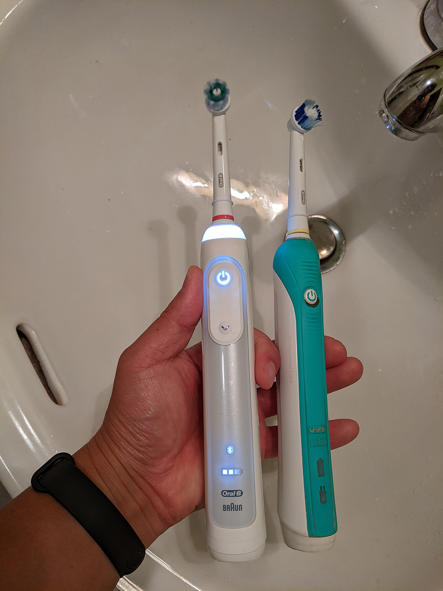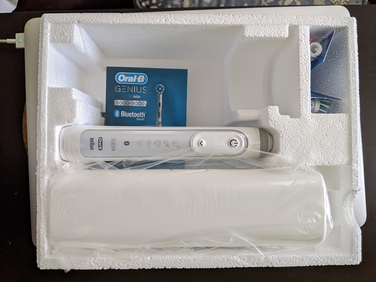 a package had arrived for me earlier: my new oral-b smart limited toothbrush. it was slightly larger than my old oral-b toothbrush, with an illuminated collar when turned on made it look like a child's toy. the light is useful for slightly illuminating your mouth while brushing, but also functions as a pressure alert light when you brush too hard. it came with a plastic storage case, 2 cross-action brush heads, and a charging station. i tried out the toothbrush. it has 6 brushing modes, but i used the default, which is regular brushing. to get it to show the red alert light, i had to press down very hard, so i'm glad i've been brushing with the normal amount of pressure. the oscillation seems pretty robust - supposedly 500% more effective than regular brushing, compared to my old oral-b which is only 300% more effective (and with a depleted battery, so who knows how well that old electric toothbrush was working).