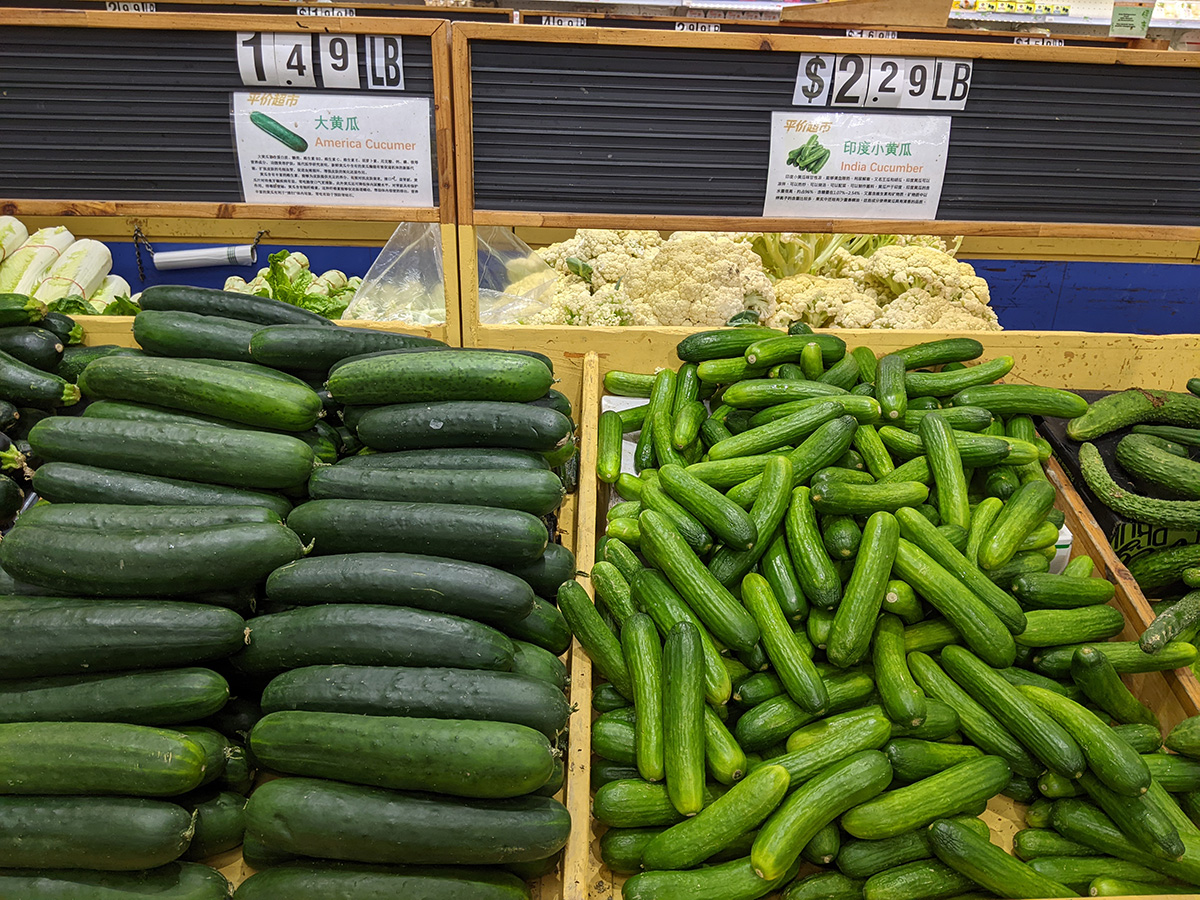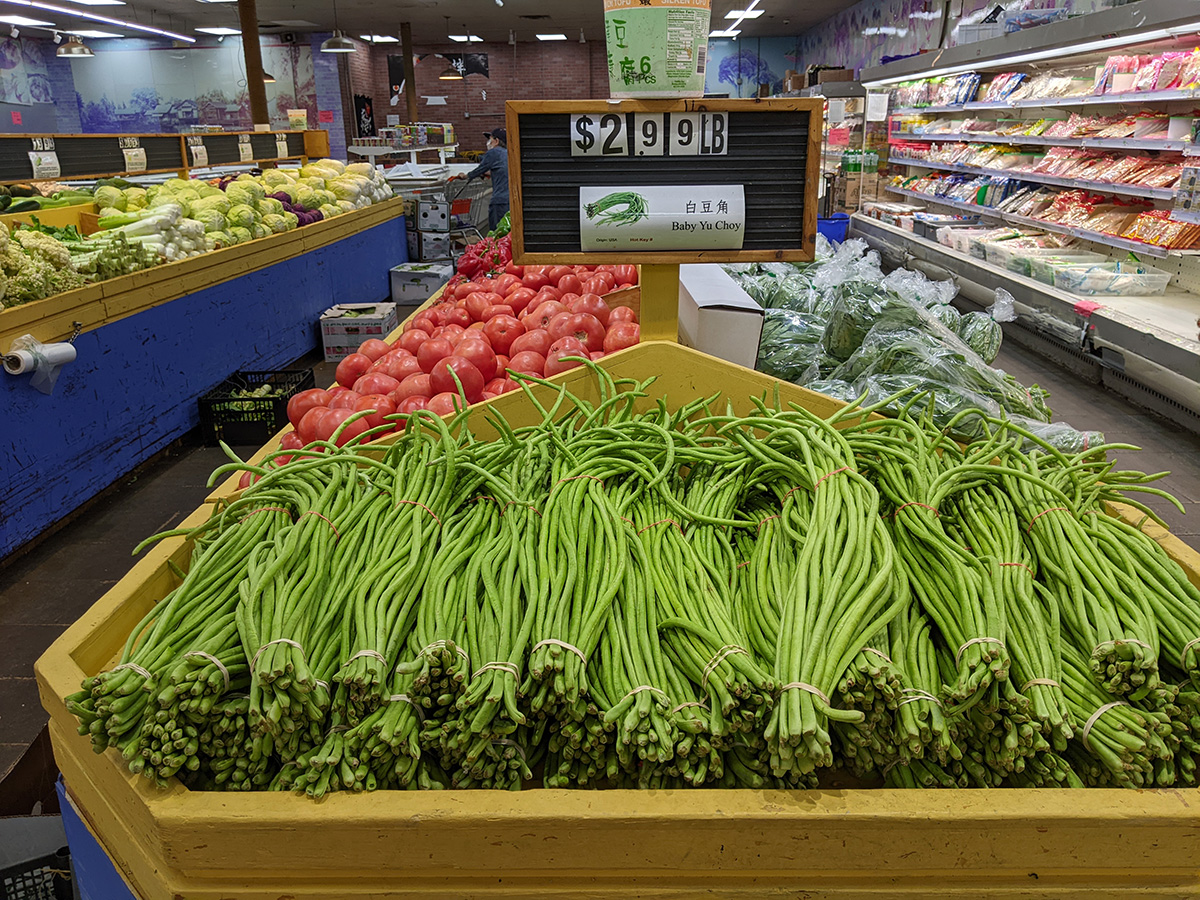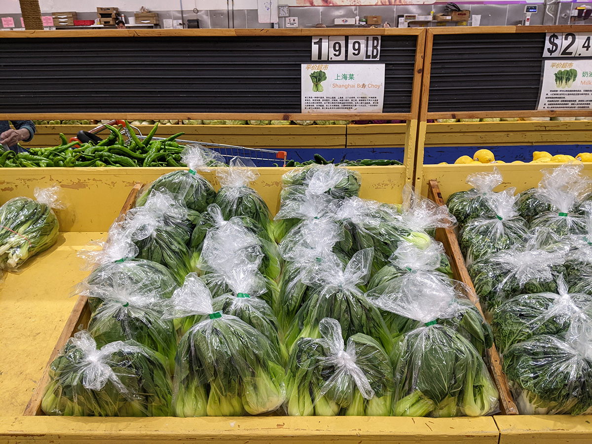 i arrived at ming's market at 10:15am. i planned on splitting my purchases, some stuff from ming's, some stuff from nearby c-mart. but when i went to c-mart, i noticed the produce prices were cheaper at ming's, so i bought what i needed, then went back to ming's a second time to finish out my list. all that back and forth took 45 minutes.
