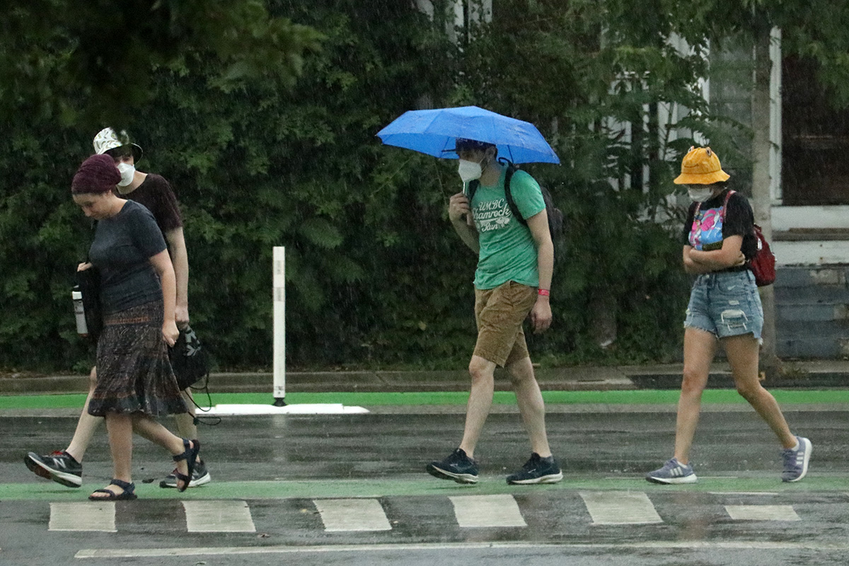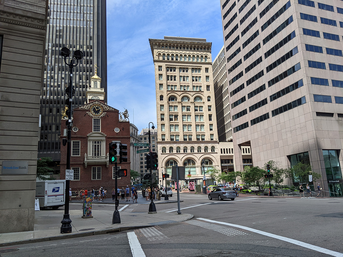 by 11am i pedaled down to haymarket via downtown crossing and post office square. i was already carrying a lot of stuff from chinatown, so i was limited in what i could buy. i ended up leaving with $12 worth of longans (4lbs), $7 worth of rainier cherries (2+ lbs), and a sleeve of garlic ($2). nobody had baby cucumbers, and the big beans vendor i saw last time didn't have any beans this time. i left haymarket via sudbury street, typically a one-way but now made into a two-way in order to alleviate the road block underneath the parking garage demolition.