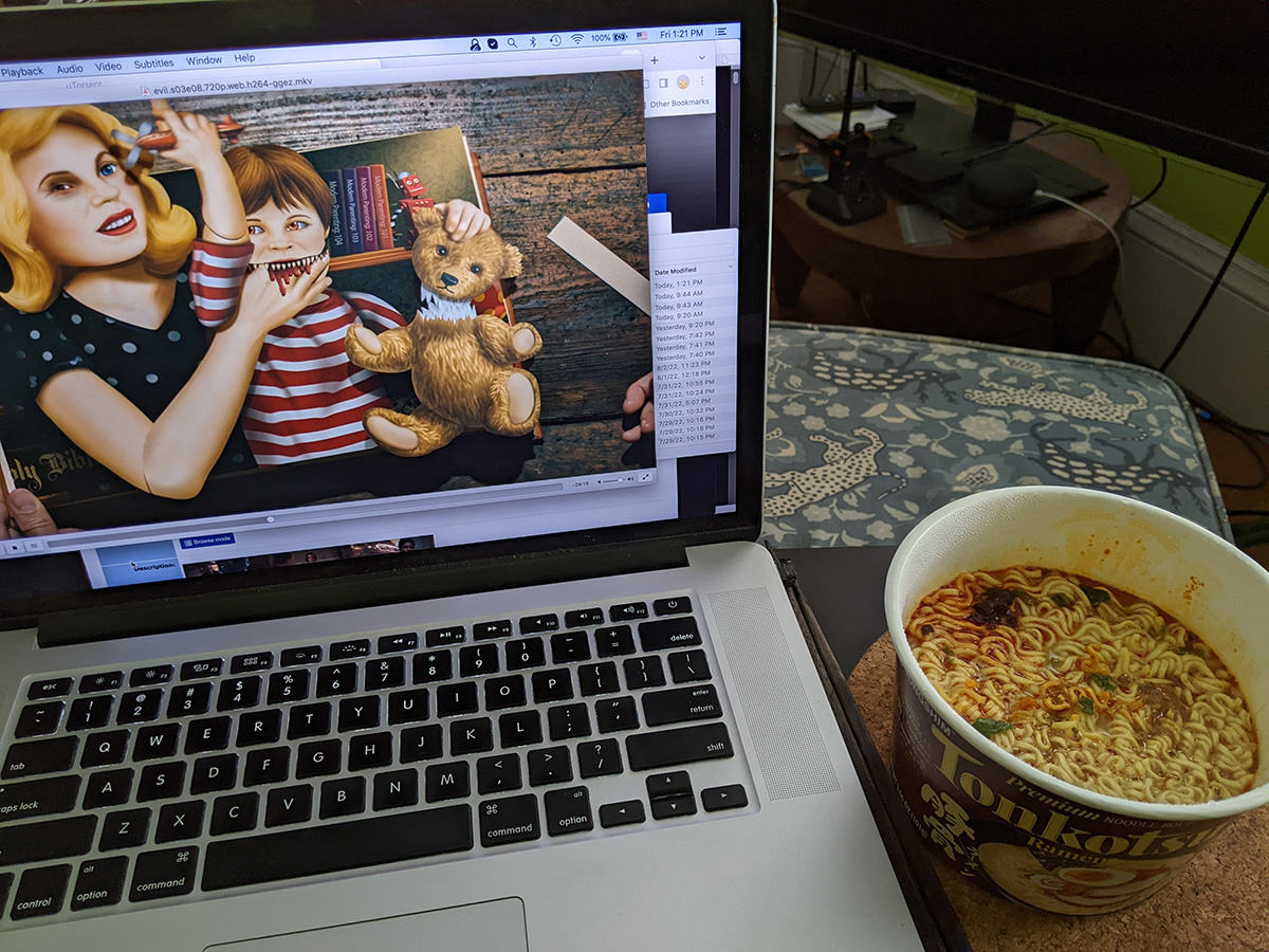 like yesterday, i didn't set foot outside the rest of the afternoon, stayed indoors with the AC turned on intermittently. i did think about taking a trip down to market basket to get some bounty paper towels on sale, but right when i was starting to get the impetus to leave, the sky darkened and a check of the doppler radar revealed severe storms imminent, in about 5-10 minutes. i quickly alerted my parents so they could bring in the patio furnitures.