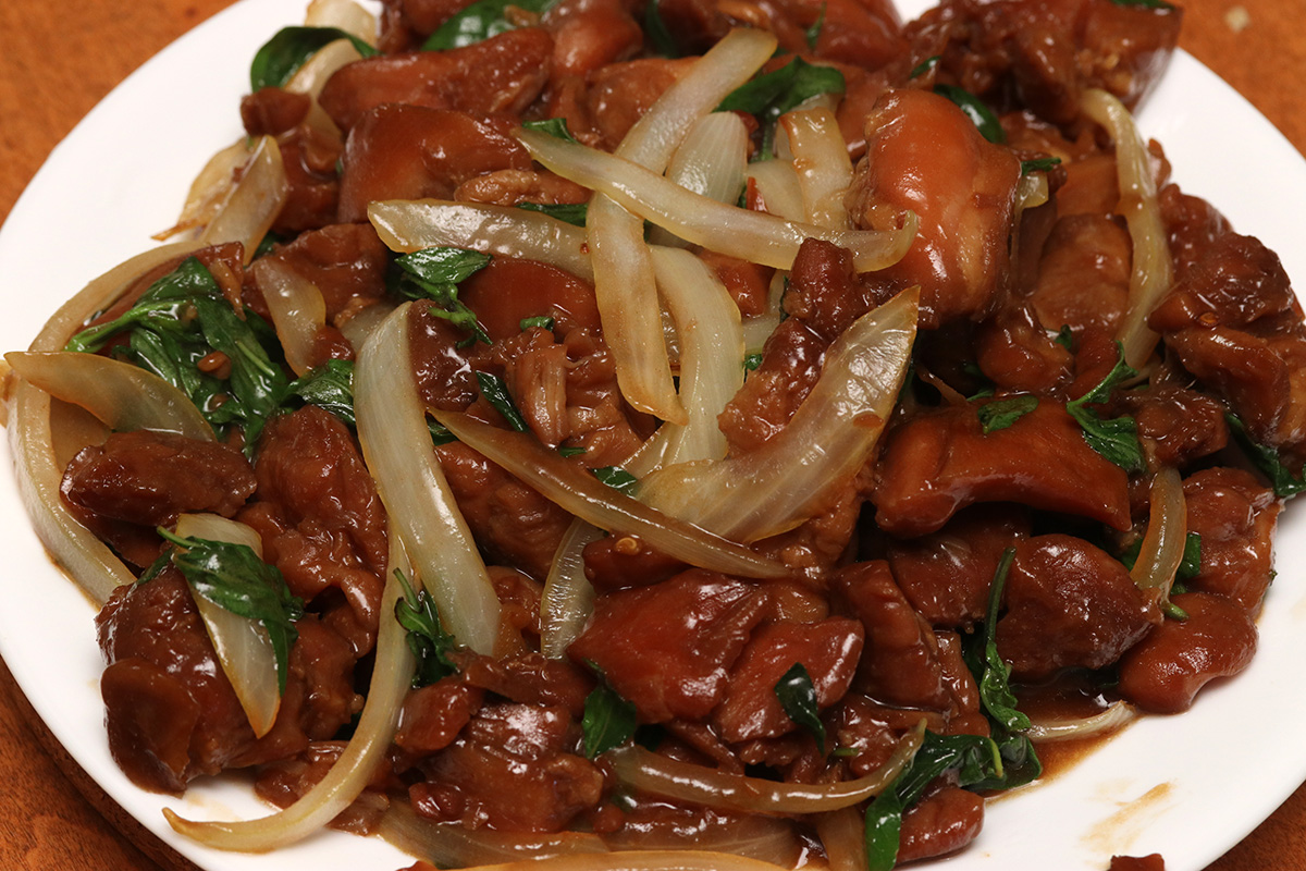 for dinner my mother made a salted pork pepper onion stirfry, as well as a simple broccoli stirfry. my father reconstituted a "3-cups chicken" dish that my sister tried to make but turned out to be a failure; he recooked it but it tasted off (he said something about my sister soaking the chicken in baking soda), had a fishy taste, and an unsettling sweetness.