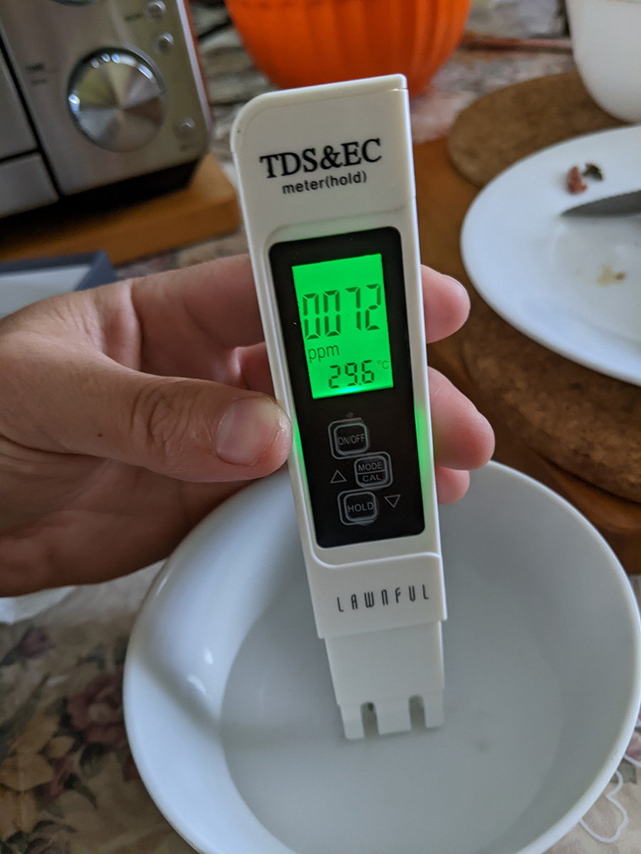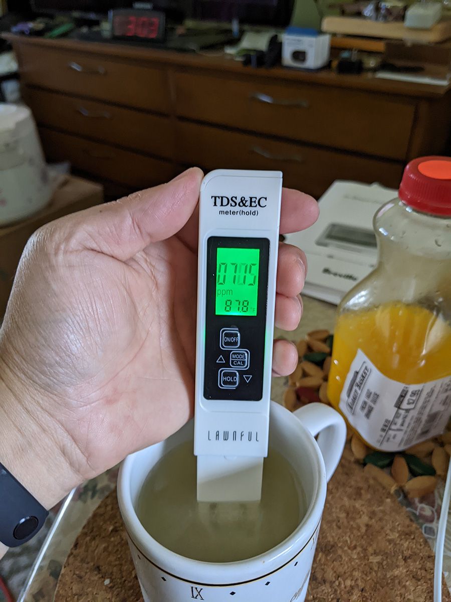 tax-free weekend purchases from amazon continue to arrive. early this morning the tayama 10 cups rice cooker arrived. for $32, it was your basic no-frills rice cooker, very similar to the zojirushi rice cooker my parents use now. later a box arrived containing an assortment of items: the tubshroom drain protector; bonide 8 oz. pyrethrin presticide; and my lawnful-brand pH and TDS meters. my father's wantjoin-brand commercial milkshake mixer arrived too; he tested it out, seems to work well, has two speed settings, the low is fast enough. i tested my hydroponics meters: the TDS worked fine, but the pH meter seemed to be dead on arrival. i even replaced the two watch batteries with a spare set that came included, that didn't work either. i contacted amazon for a replacement.