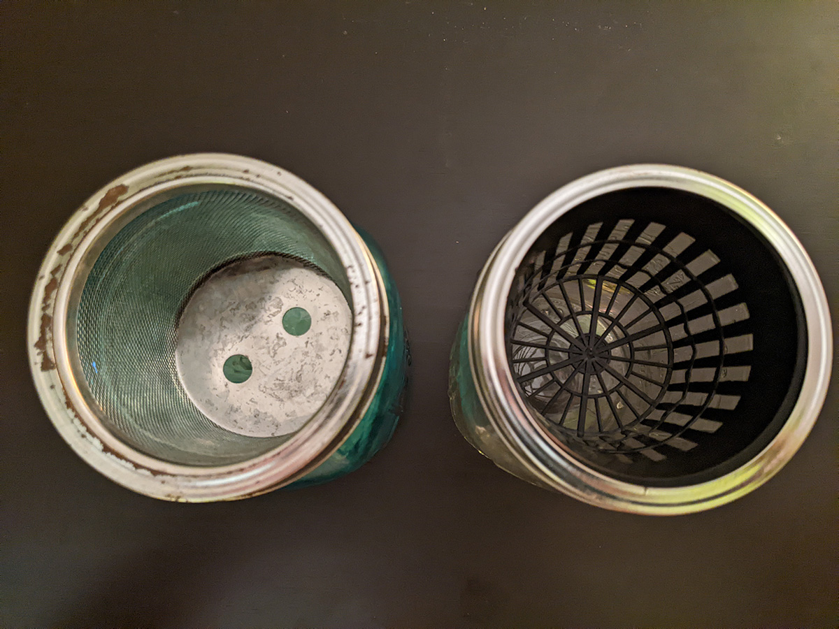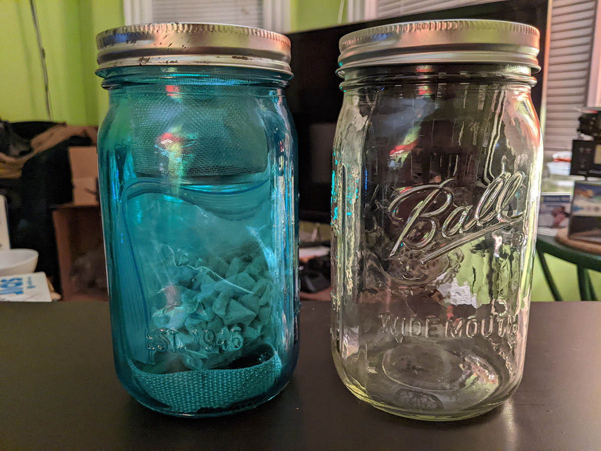 so one of the pots i picked up earlier was a blue tinted mason jar. while cleaning the sticker from the bottom, i discovered it actually wasn't naturally blue, but covered in a thin film of blue material that can wash off. the mason jar was actually a part of a modern sprout garden jar kit which is essential a hydroponic kit. it had all the additional parts minus the coconut coir disk and activated carbon. i could use it for my own hydroponics experiment. also, those 3 inch net pots fit into a wide mouth mason jar perfectly. i can do some kratky hydroponics while waiting to assemble my aeroponics system.