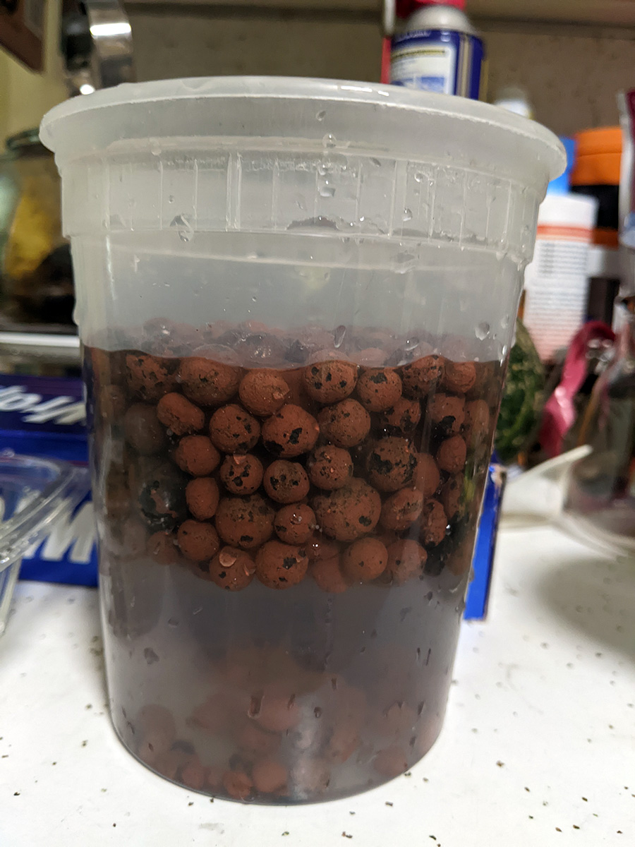 i also soaked the leca, which was covered with reddish clay dust. it took a few water change to get the water sort of clear. the weird thing with leca is it floats. and it looks like food (especially dog food). the fact that it floats makes me wonder if i can use a leca pellet as a float in our rain barrel sight tube?