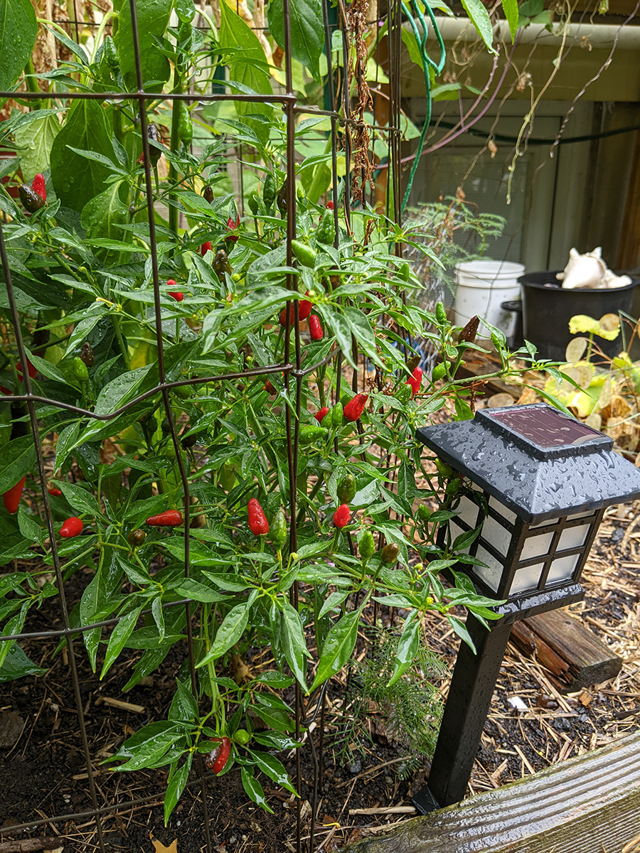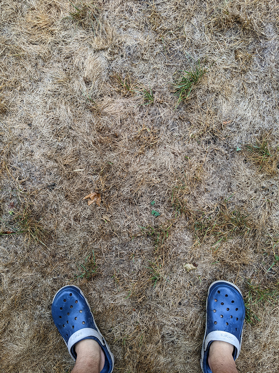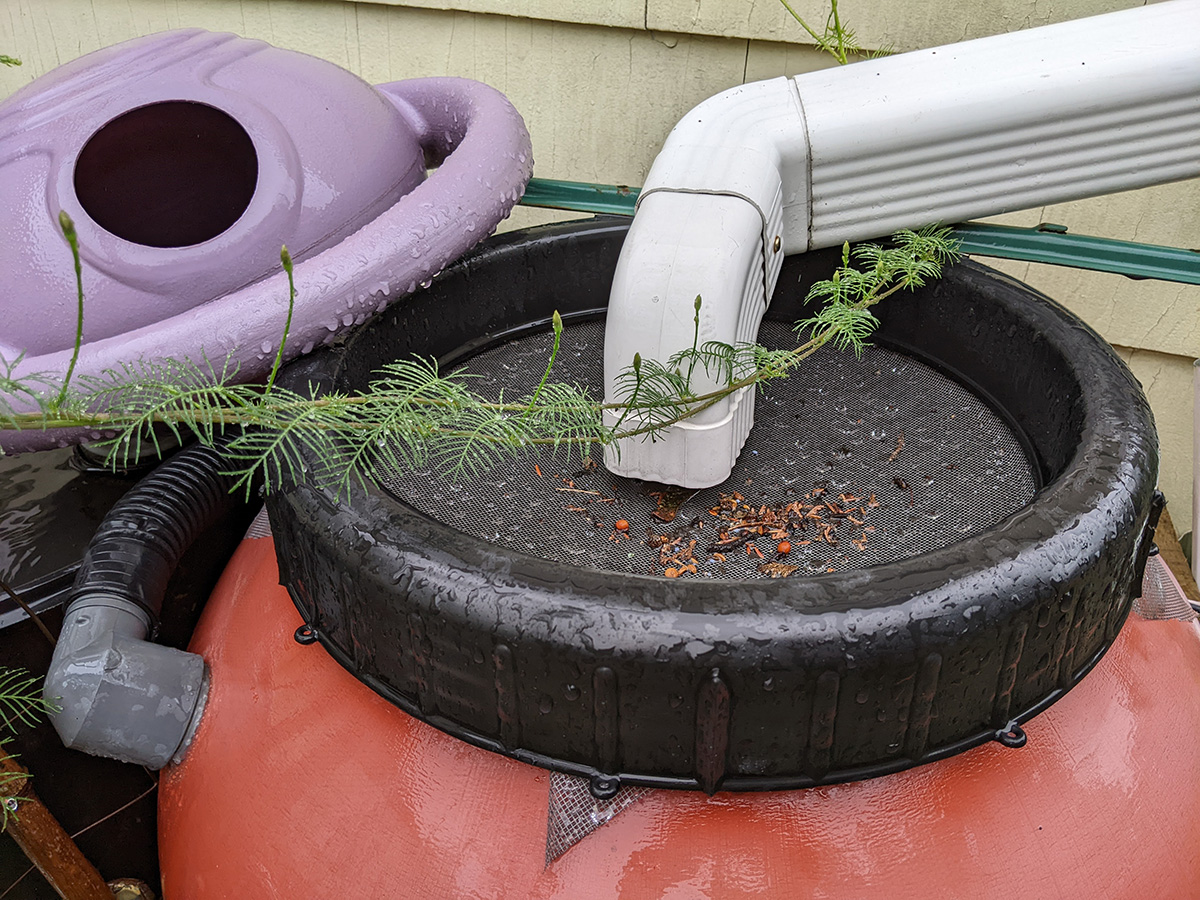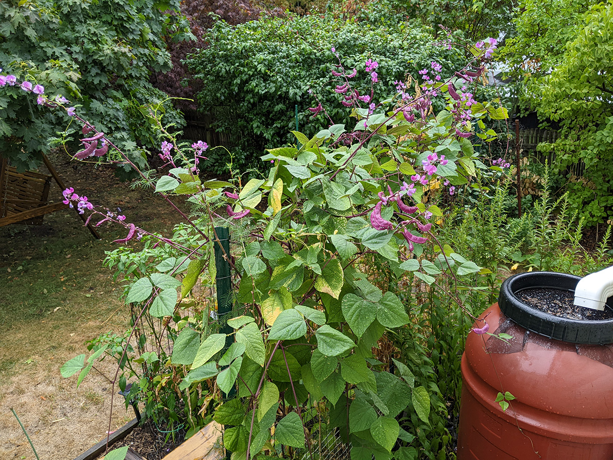 i went outside to inspect the filling rain barrels. this type of rain is the best - the slow and steady kind - for catching the water off the roof. by the end of the day, the barrels were 6" away from maximum capacity. slow and steady rain is also good for watering the plants and lawn, as the water can slowly soak into the ground instead of just running off. nevertheless, even though the garden soil looked soaked, digging into the dirt less than half a centimeter revealed still-dry soil underneath. it's going to take more than a day of rain to make up for months accumulation of drought.