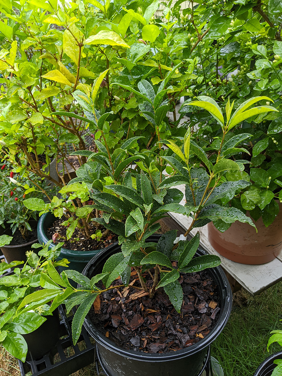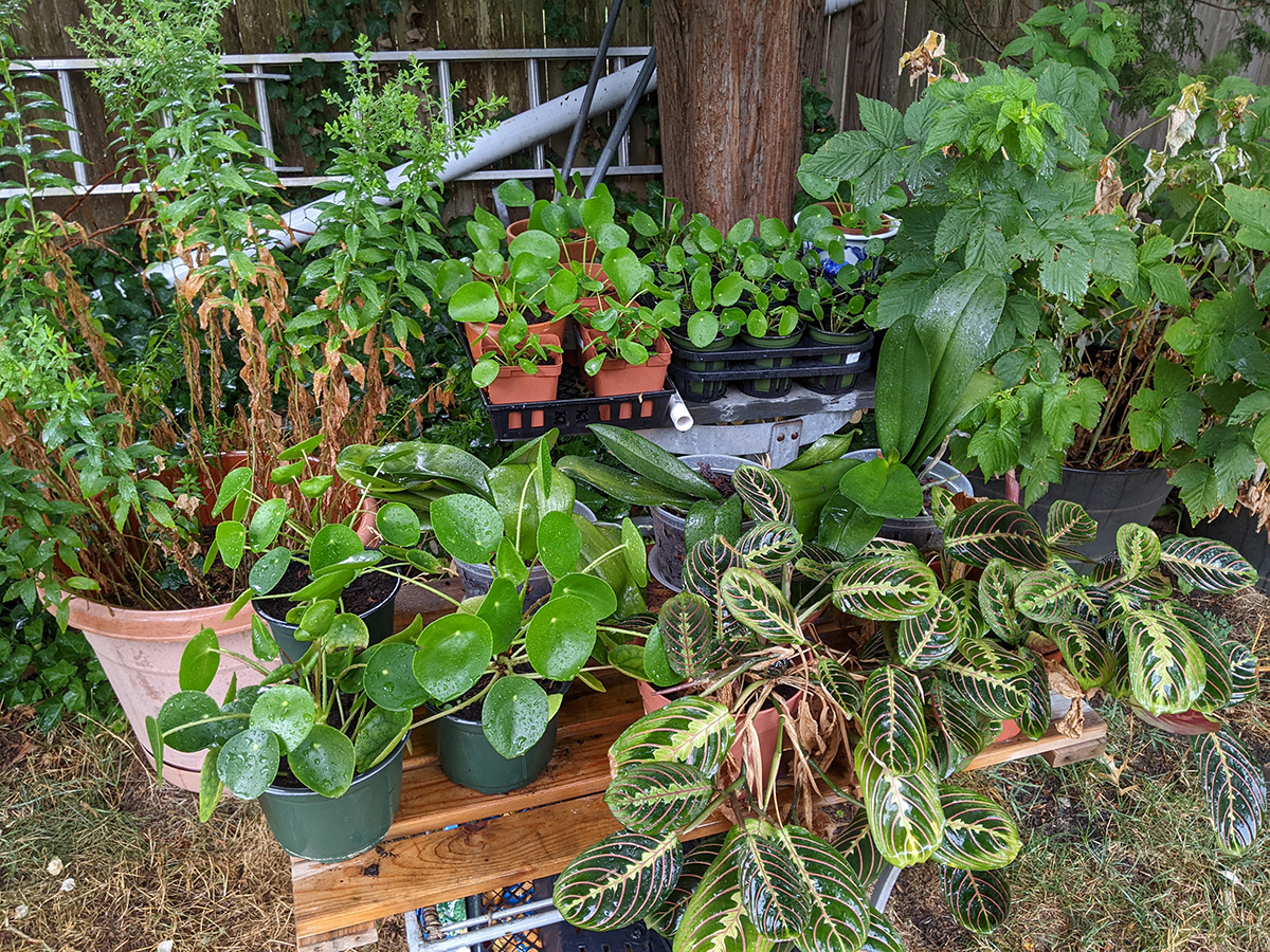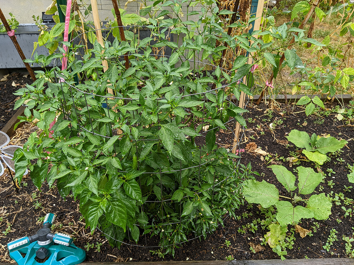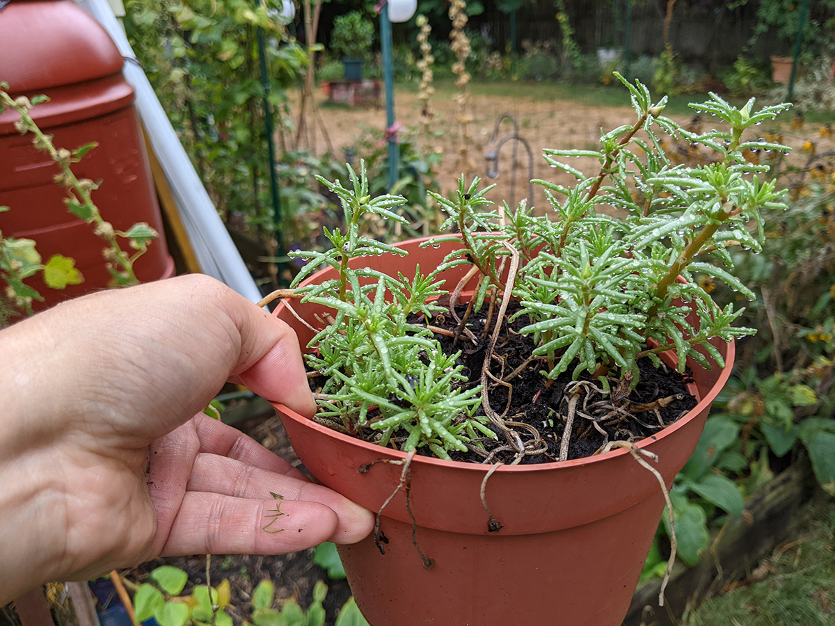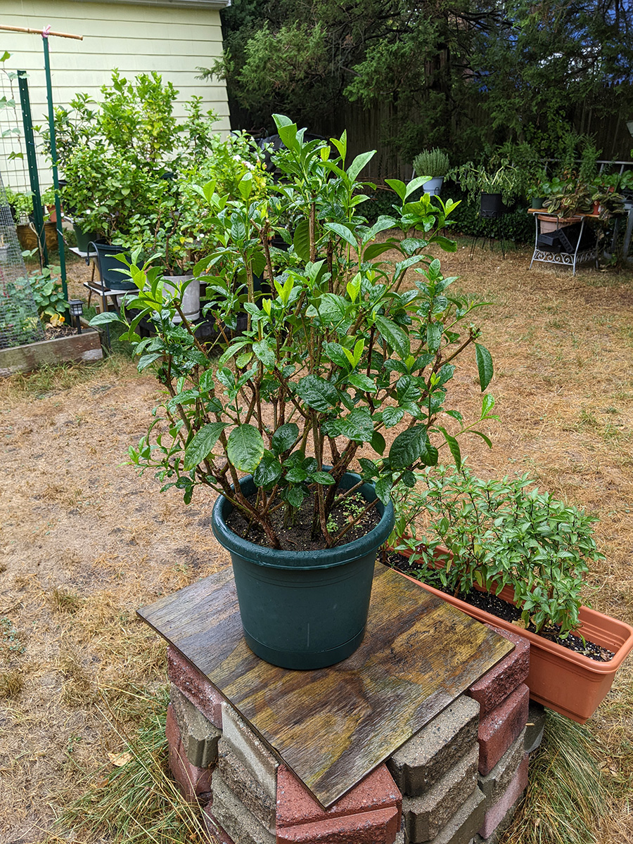 i went outside to inspect the filling rain barrels. this type of rain is the best - the slow and steady kind - for catching the water off the roof. by the end of the day, the barrels were 6" away from maximum capacity. slow and steady rain is also good for watering the plants and lawn, as the water can slowly soak into the ground instead of just running off. nevertheless, even though the garden soil looked soaked, digging into the dirt less than half a centimeter revealed still-dry soil underneath. it's going to take more than a day of rain to make up for months accumulation of drought.