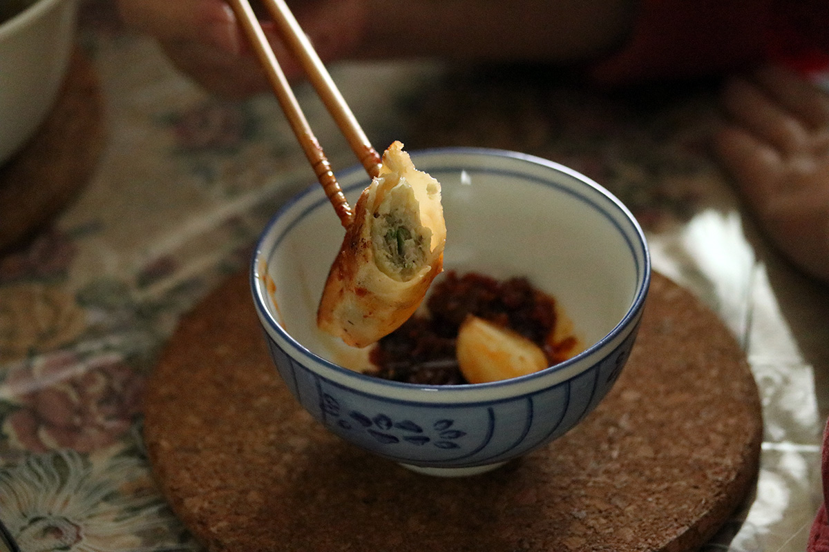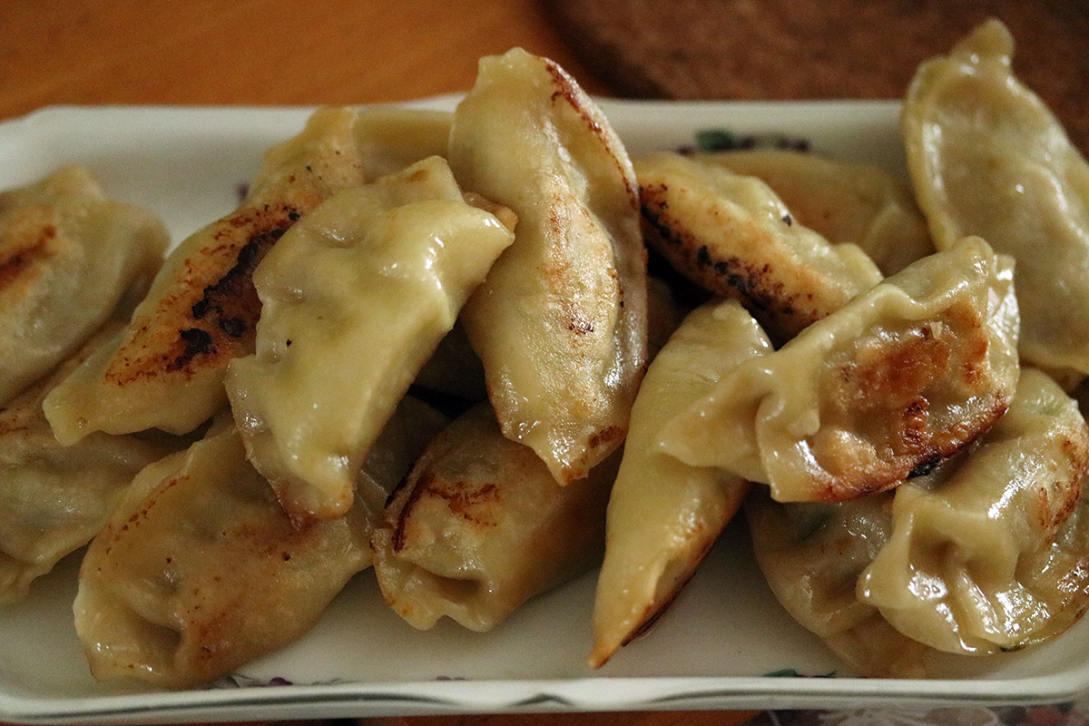we arrived at my parents' place by 12:45pm. the rain had picked up to a point where it'd soak your clothes if you stood outside without an umbrella for a few minutes. my sister had dropped off hailey in belmont this morning so her dog greeted us when we came inside the house. my parents cooked up some frozen pan-fried dumplings for lunch.
