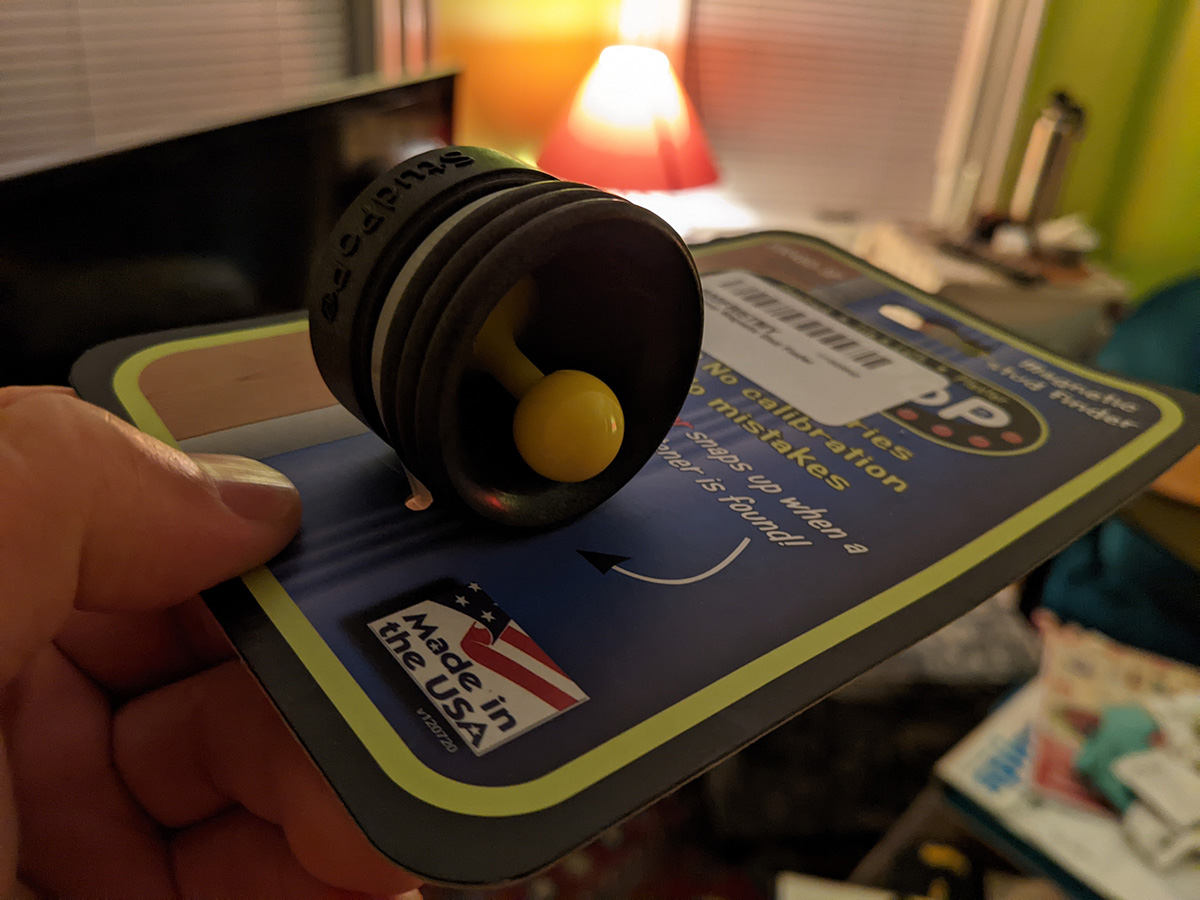 i decided to return the studpop magnetic stud finder. it sort of works, but i couldn't get it to work consistently, and finding studs by locating the nails via a strong magnet is pretty labor intensive. there's got to be better stud finders, ones that use more advanced technology than simply a magnet that "pops" when it finds a stud nail. also, the thing costs $10. my father thought i found it, so when he heard how much i paid for it, he also said i should return it.