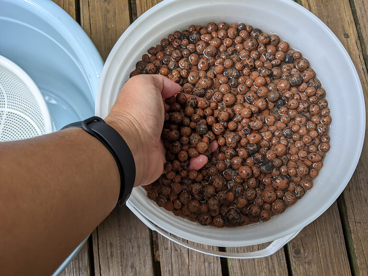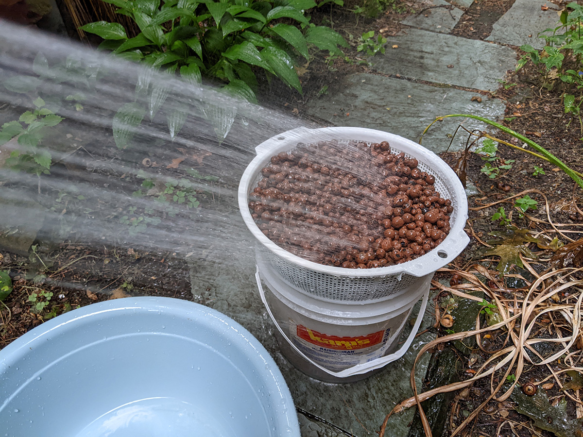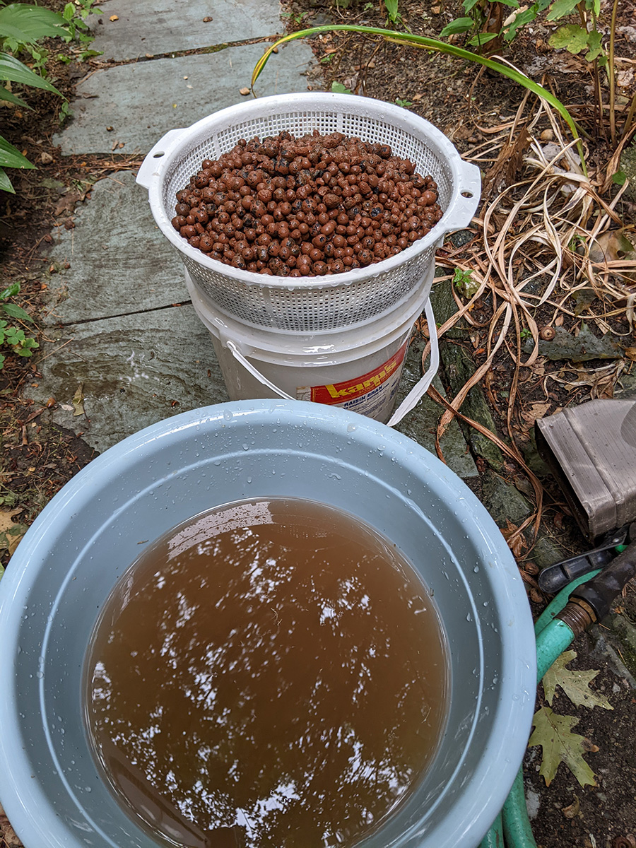 i soaked my leca before going out and rinsed it outside a few times when i came back, before soaking them in a bucket again. mosquitoes were everywhere, i managed to escaping getting bit, but i must've smacked half a dozen that tried to land on my legs.