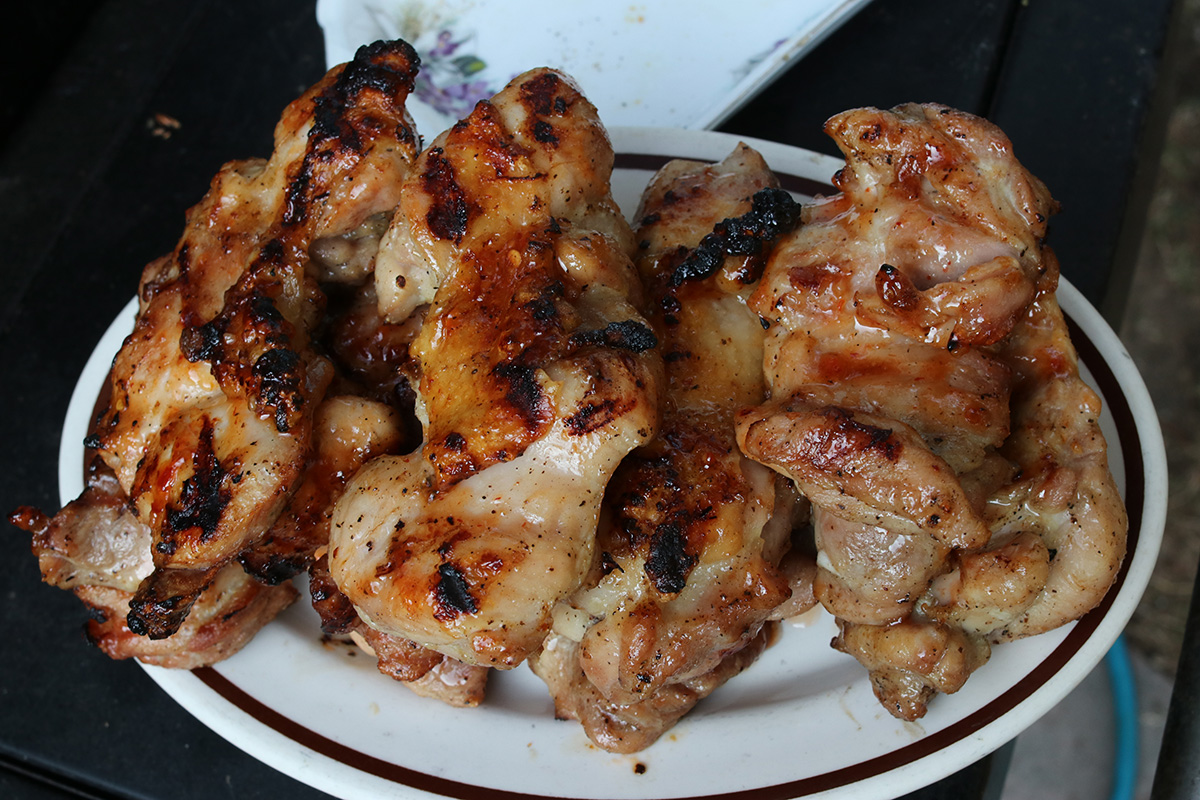 my father grilled the deboned drumsticks as well as some corn and zucchini (no, it was from the garden, we've yet to get a single zucchini this year, although there's currently two very small zucchinis).
