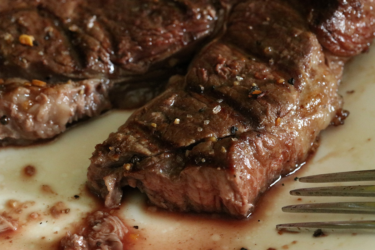 by the time we went to my parents' place, it was already 1:30pm. my mother bought some thin steaks at market basket and my father grilled them in the backyard. he cooked them for a long time so i figured the meat would be very well done, but it was still on the rare-medium side. i don't know what cut of meat it was, but it was very tough and chewy and didn't have a lot of flavor, even though he sprinkled montreal steak seasoning on it and buttered the sides before grilling. i had to add more seasoning to make it palatable, as well use hitting the A1 steak sauce.