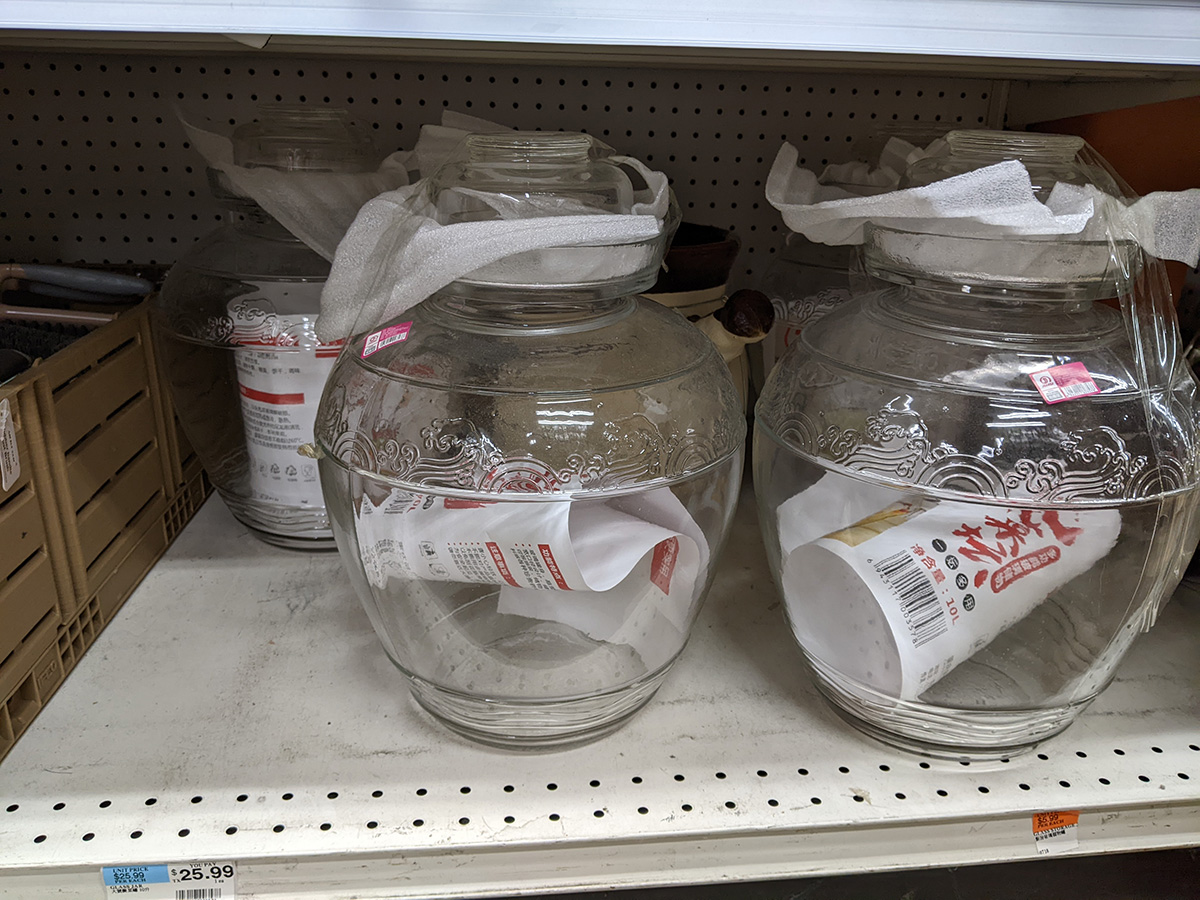 while my father returned to the car, i went in search of my mother at the dollar tree. i was also in search of glass clamp-lid jars (they didn't have any) and large plastic food containers (didn't have the ones i wanted either). i also couldn't find my mother and searched the entire store (a big store at that), until she called me and said she was already outside. she bought $40 worth of cheap cotton yarn.