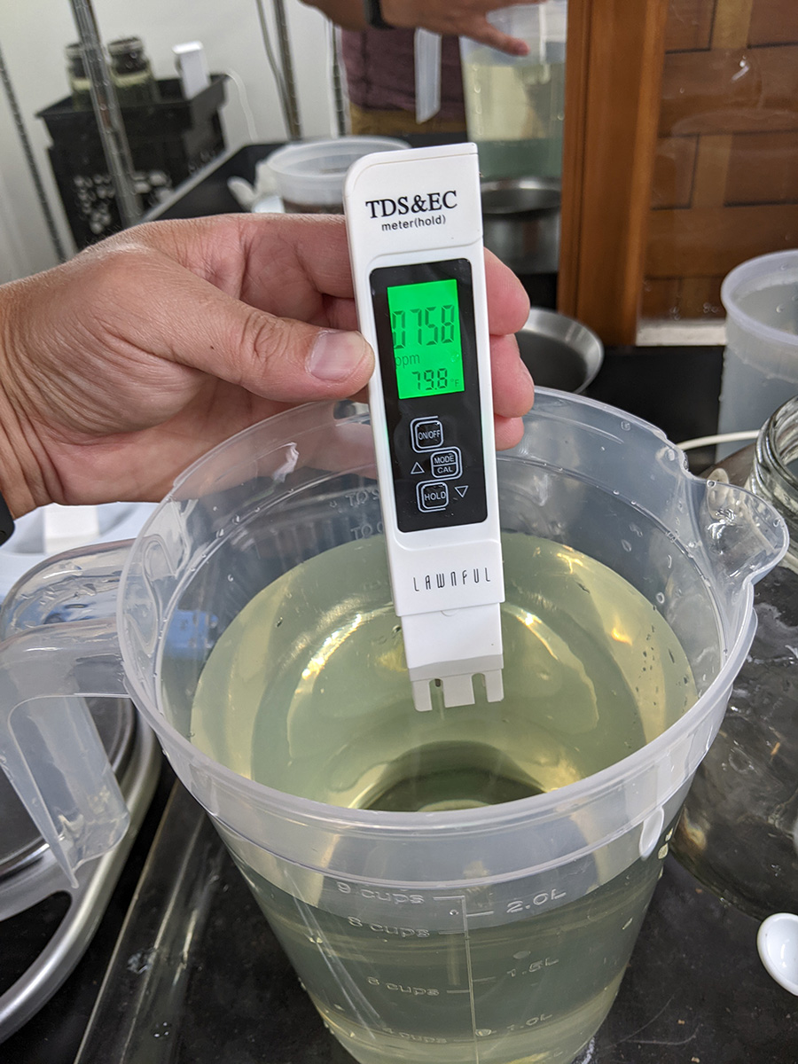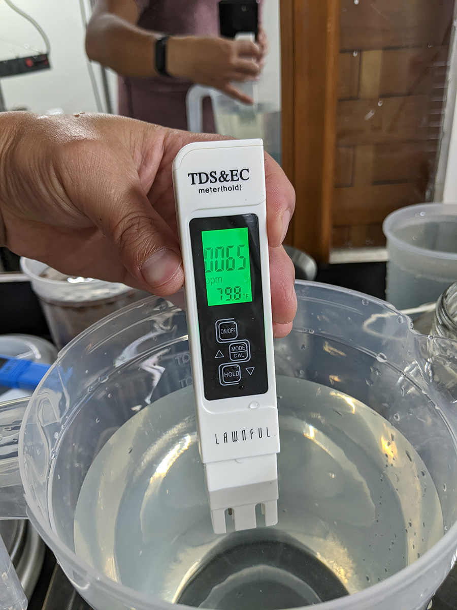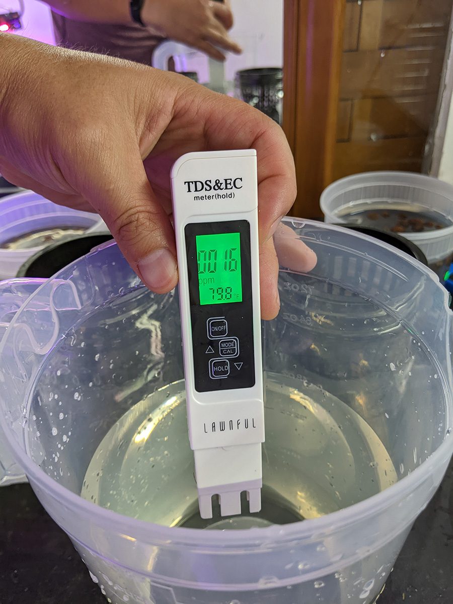 - so on the flip side, even though rain water is more acidic than tap water, it's actually cleaner, and doesn't have as many impurities as tap water: tap water EC 91ppm, rain water 16ppm.