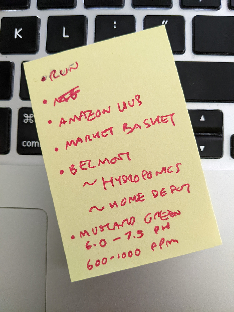 this whole hydroponics business took me nearly an hour. originally i also wanted to go to home depot to get some aeroponics supplies (like PVC tubes), but i can do that later in the week. i returned home by 4pm.