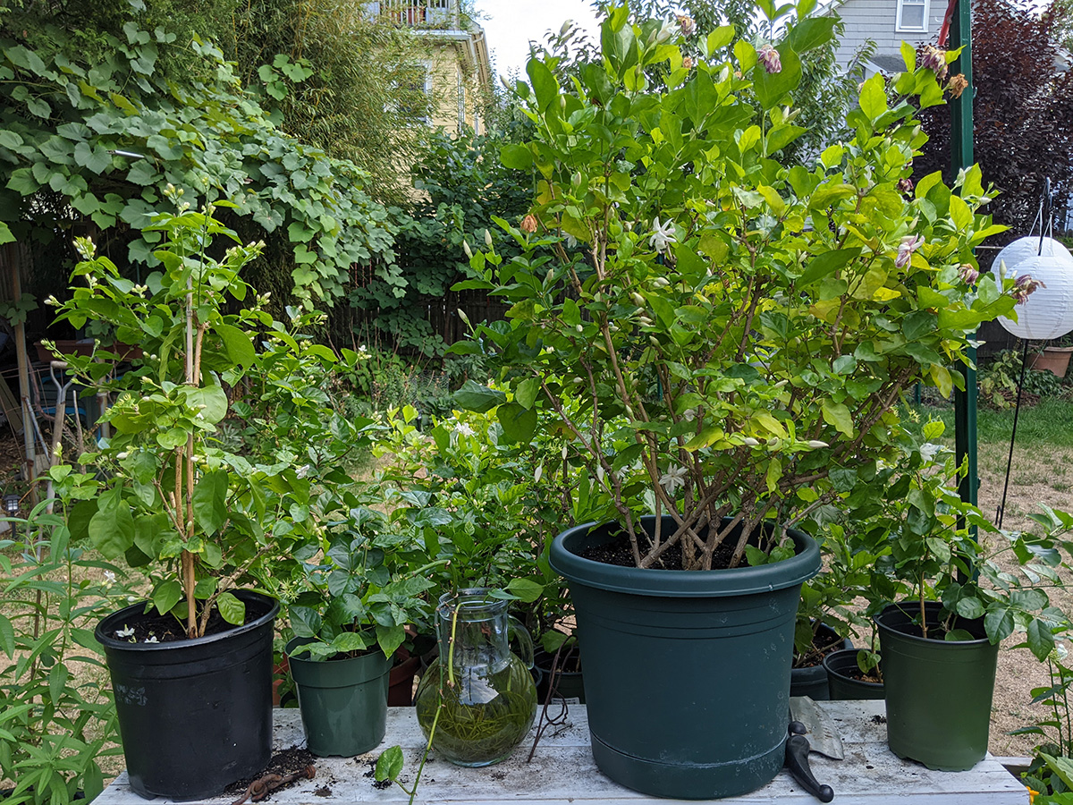 next we fertilized our garden. i mixed 3 buckets of blue miracle-gro fertilizer. i also watered the orchids using the dunking method with a weak solution of orchid fertilizer.
