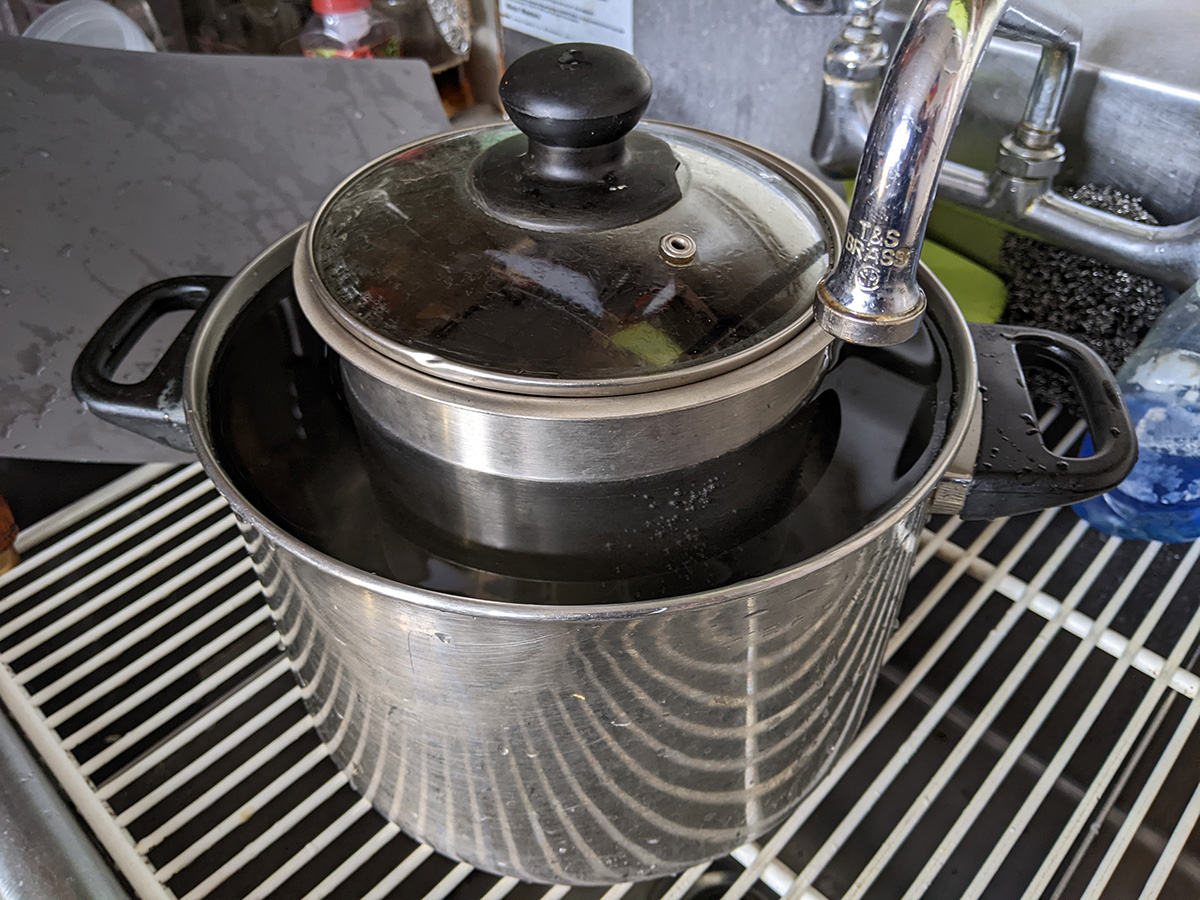 things i did today at the cafe: make another batch of tea eggs; vacuumed the floor; made a makeshift second shelf on the railing wall next to the basement staircase;